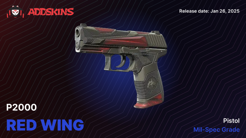Red leather with stitched wings - bold without being obnoxious. Semi-matte paint, polished seams. Strong indoor presence, shows up clearly in killcams. Suits aggressive entry fraggers who want their sidearm to make a statement. Pairs well with crimson gloves.