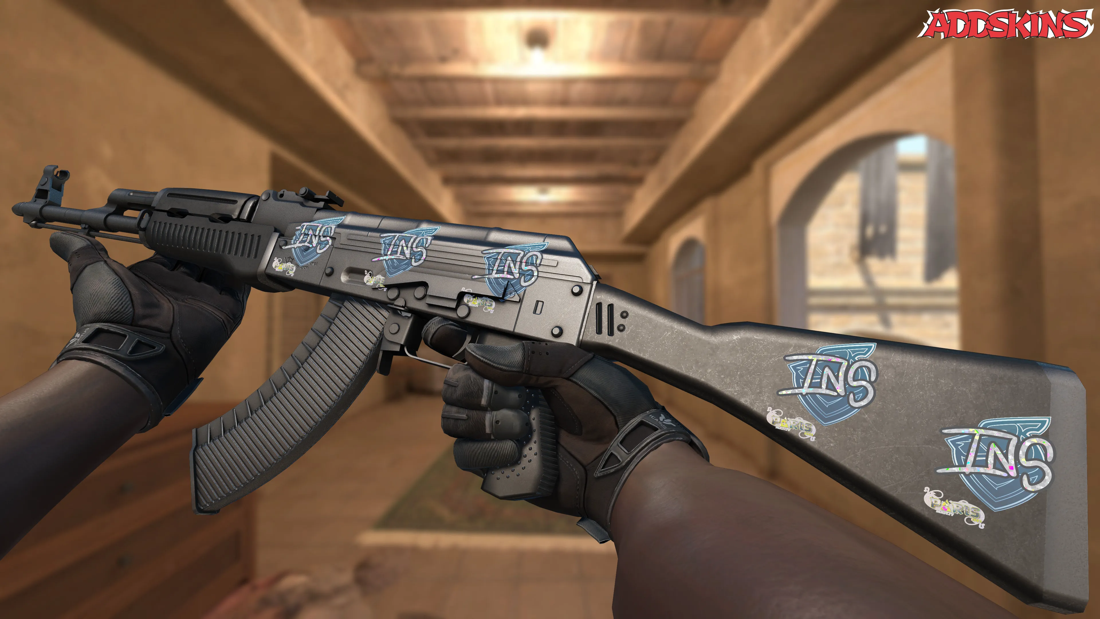 The Sticker | INS (Glitter) | Paris 2023 is a rare sticker celebrating the CS2 Paris 2023 tournament. It can only be obtained by opening a container for Paris 2023 Contenders Autograph Capsule and adds exclusive flair to any weapon in the game.
