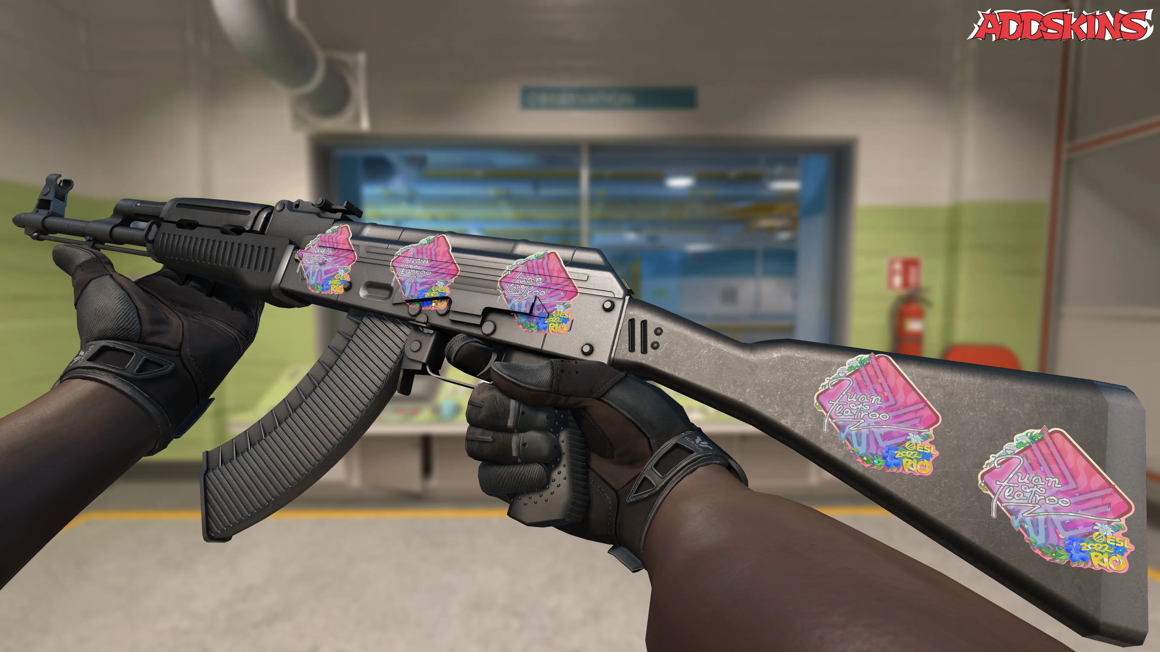 Slapped onto a gun, this gleaming sticker exudes class indeed, featuring the skills of Juan "juanflatroo" Flores on this sticker and member of the esteemed Glitter Gaming to the very popular Rio 2022 CS2 Major Championship, with all of its glitz and shine.