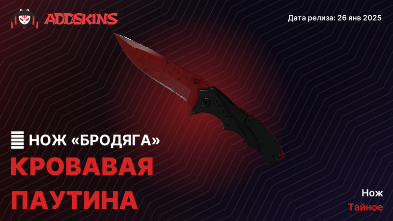 Красно-черная база с тонкой паутиной поверх. Паутина выполнена глянцем и остается четкой даже в динамике - один из самых узнаваемых принтов в CS2. Идеален для highlight-роликов: контраст высокий, детали не теряются. Редкий и дорогой, но оправдывает вложения.