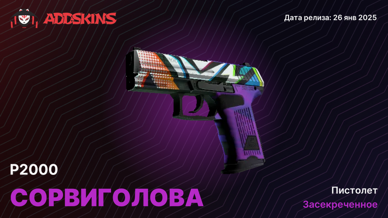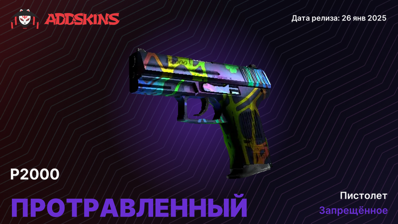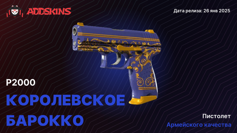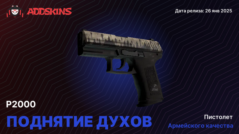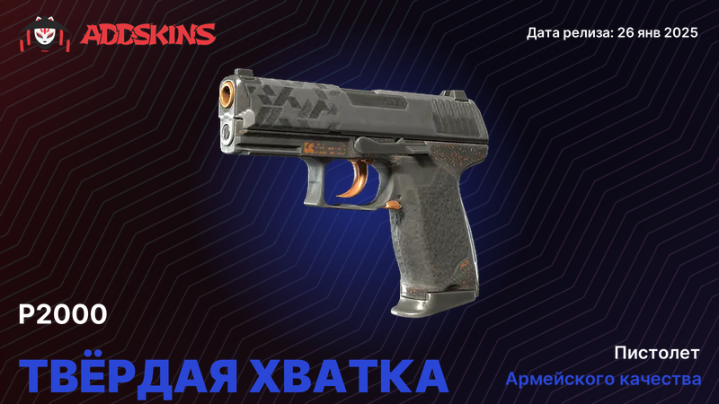 P2000 - стандартный выбор CT в CS2. Компактный, точный, с предсказуемой отдачей. В пистолетных раундах и эко его видно постоянно, поэтому скин - это не только коллекционная история, но и часть визуала в каждом матче. Маленькая рамка оружия заставляет обращать внимание на детали: текстуру, цвет, финиш. Хороший скин дополняет лоадаут, плохой - создает визуальный шум или теряется на фоне.