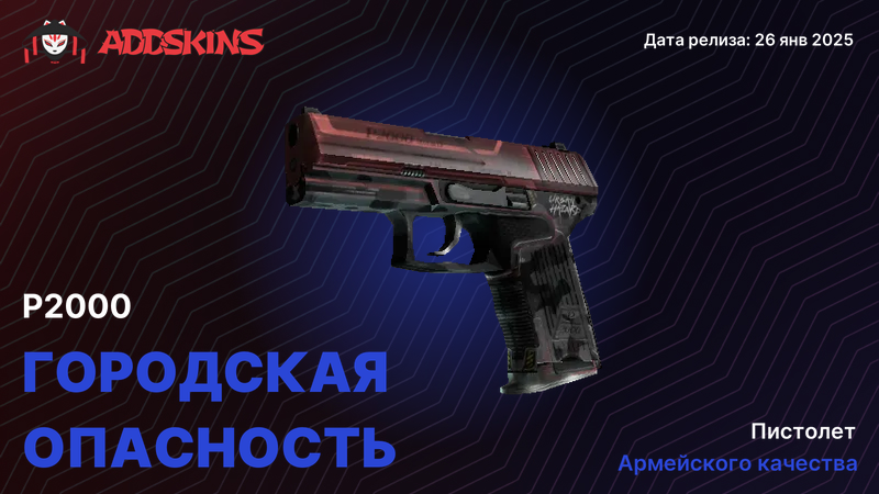 Агрессивный красно-черный контраст с графическими акцентами. Глянец средней интенсивности, насыщенные цвета. Выделяется на темных картах, привлекает внимание в лоадауте. Для игроков, которые любят яркие скины и не боятся быть заметными. Хорошо сочетается с красными или черными перчатками.