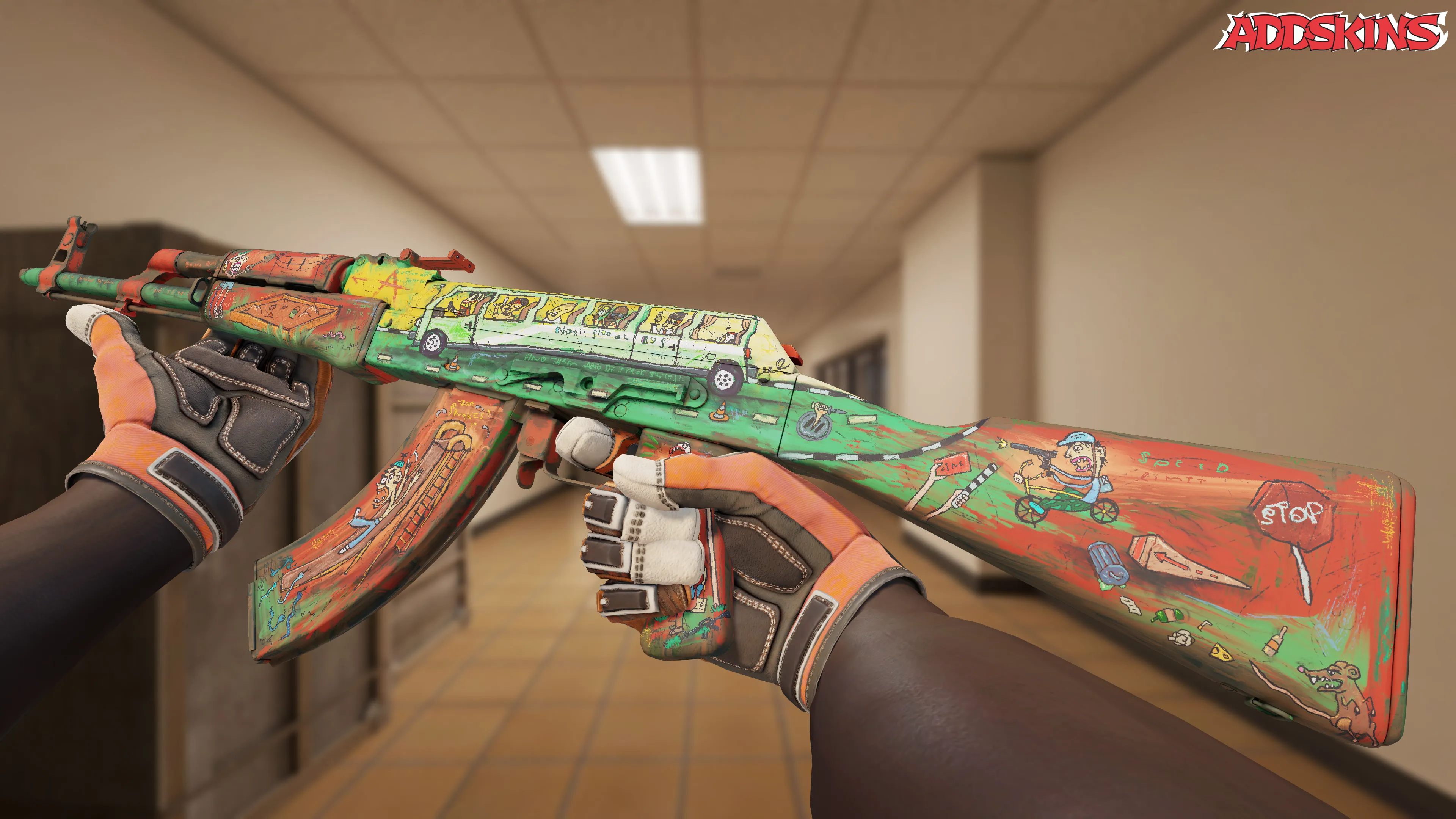 Скин AK-47 | The Outsiders отличается уникальным стилем окраски, который позволяет широкий выбор цветовой гаммы. Он представляет собой яркую цветовую схему оранжевого и зеленого цветов, при этом индексы узоров не влияют на его уникальный дизайн.
