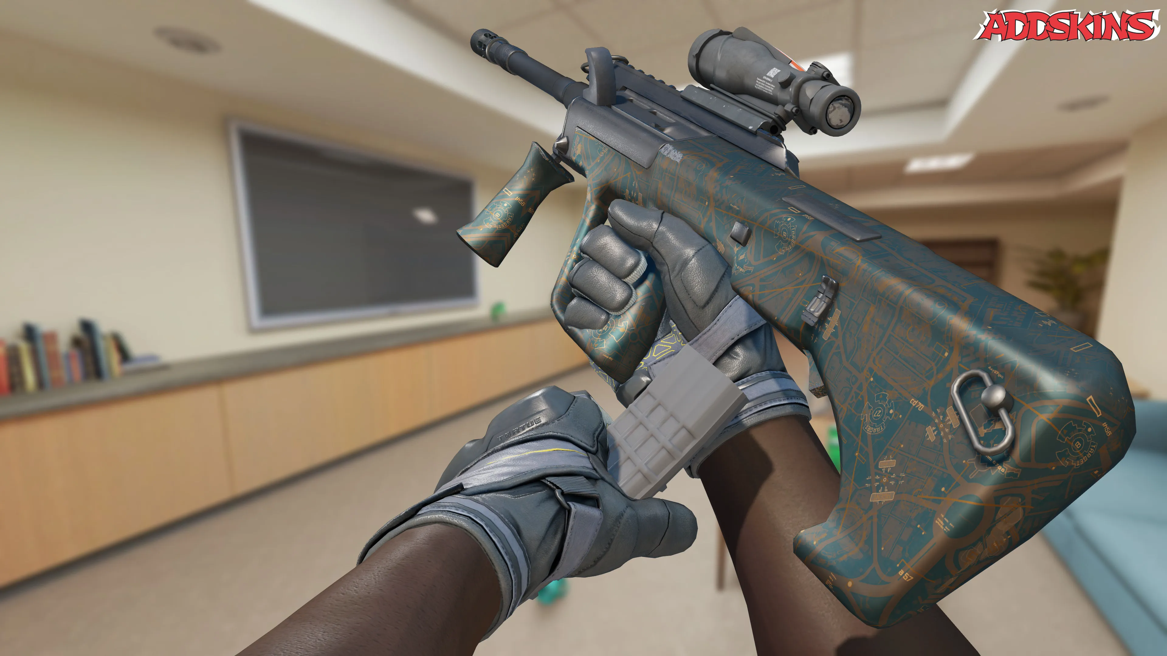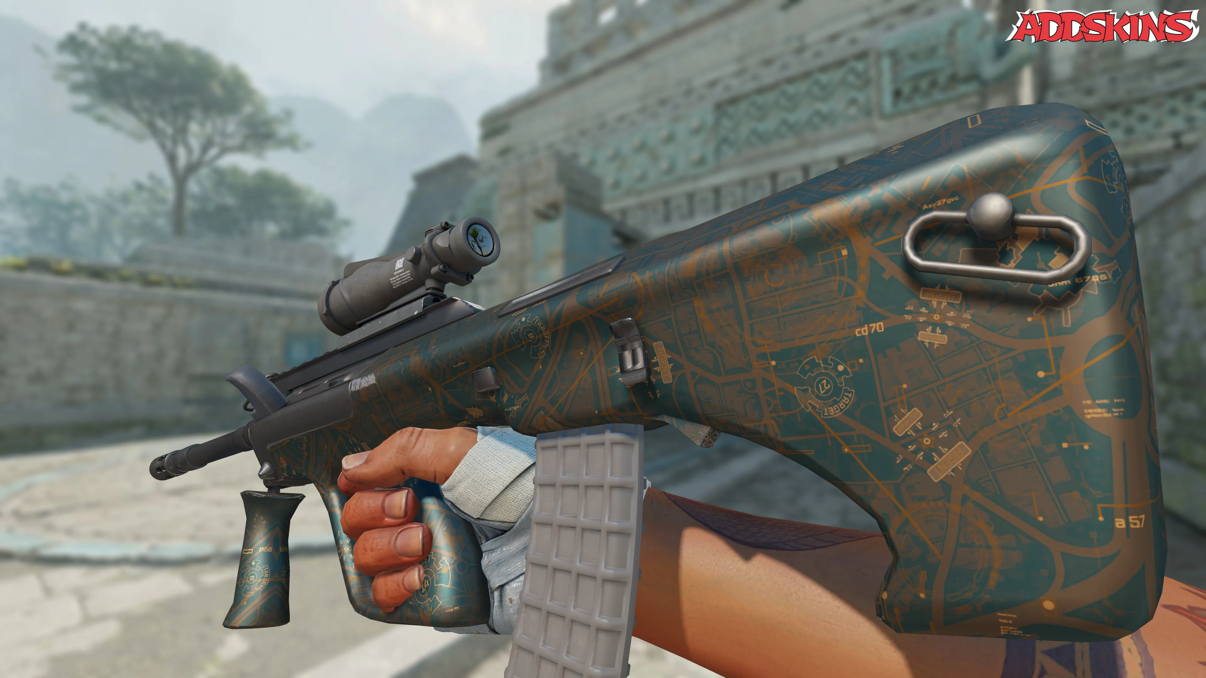 AUG | Surveillance - страшное оружие благодаря высокой точности и мощности в сочетании с несколько замедленным временем перезарядки. На его корпус нанесен интригующий рисунок карты поверх дисплея с высоты птичьего полета, что создает непревзойденный визуальный эффект. С помощью AUG | Surveillance вы с легкостью обнаруживаете и уничтожаете цели.