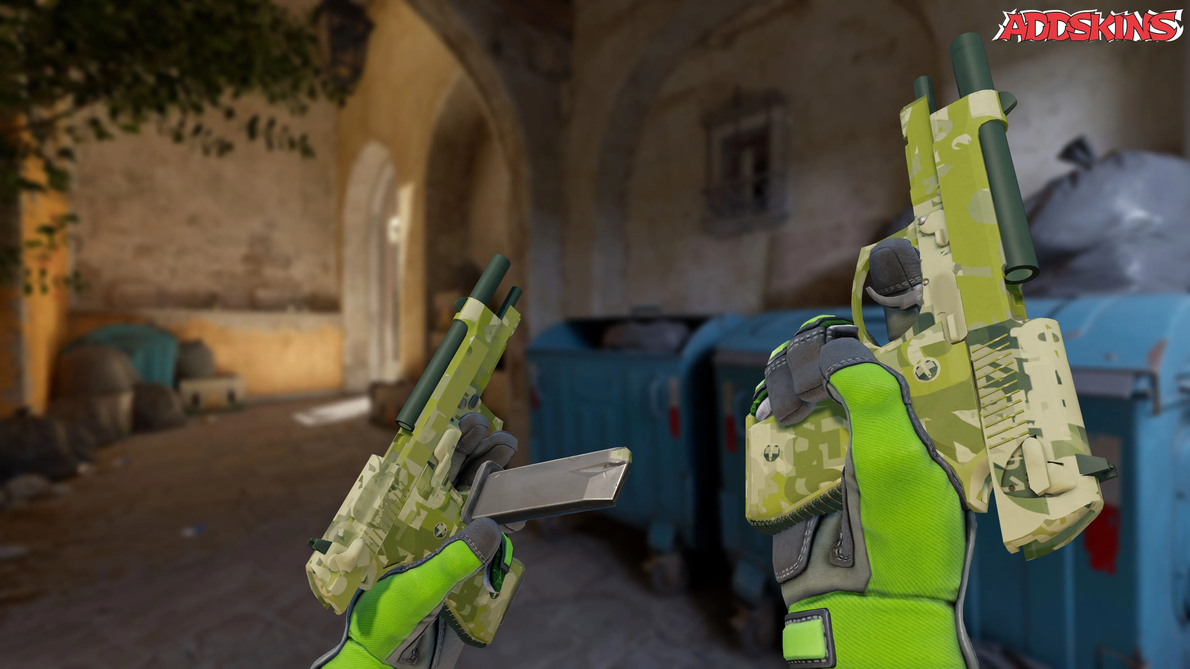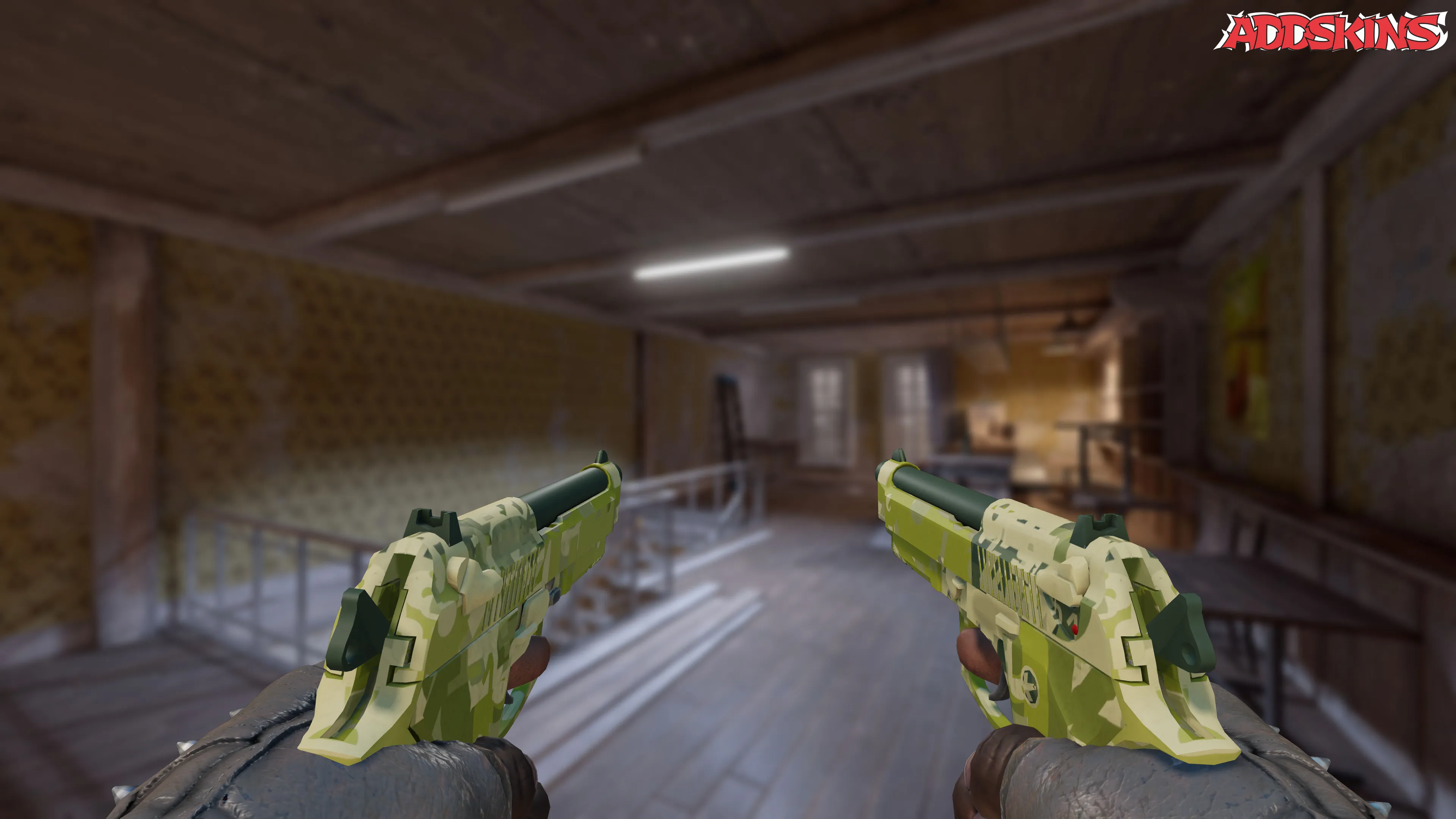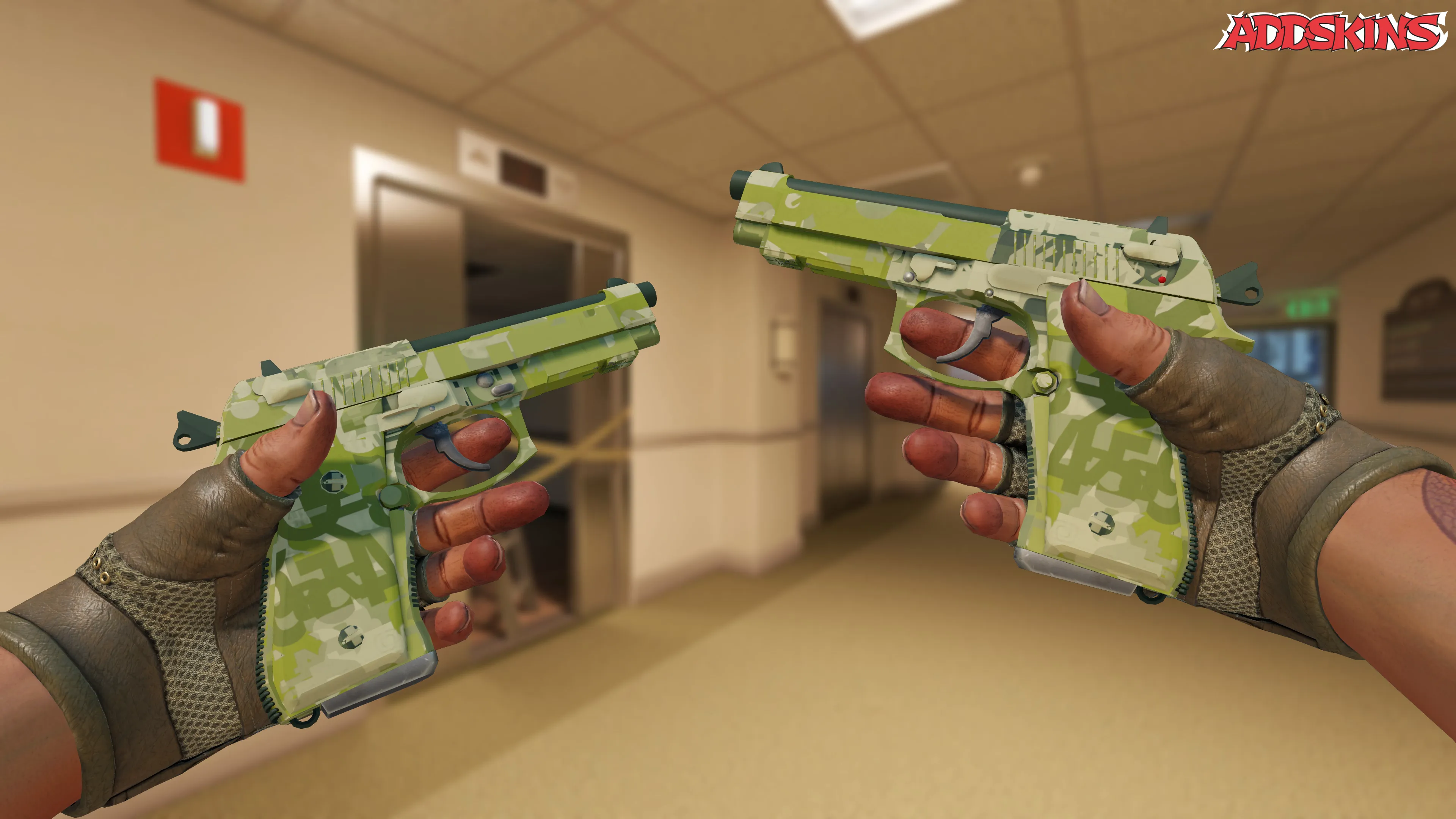 Отделка Switch Board на этих Dual Berettas в состоянии боевого износа представляет собой эксклюзивный гидрографический стиль, при котором части оружия погружаются в водный бак с плавающей пленкой. Зеленый оттенок, являющийся доминирующим цветом, добавляет яркости оружию, в то время как индекс узора влияет на общий вид отделки.