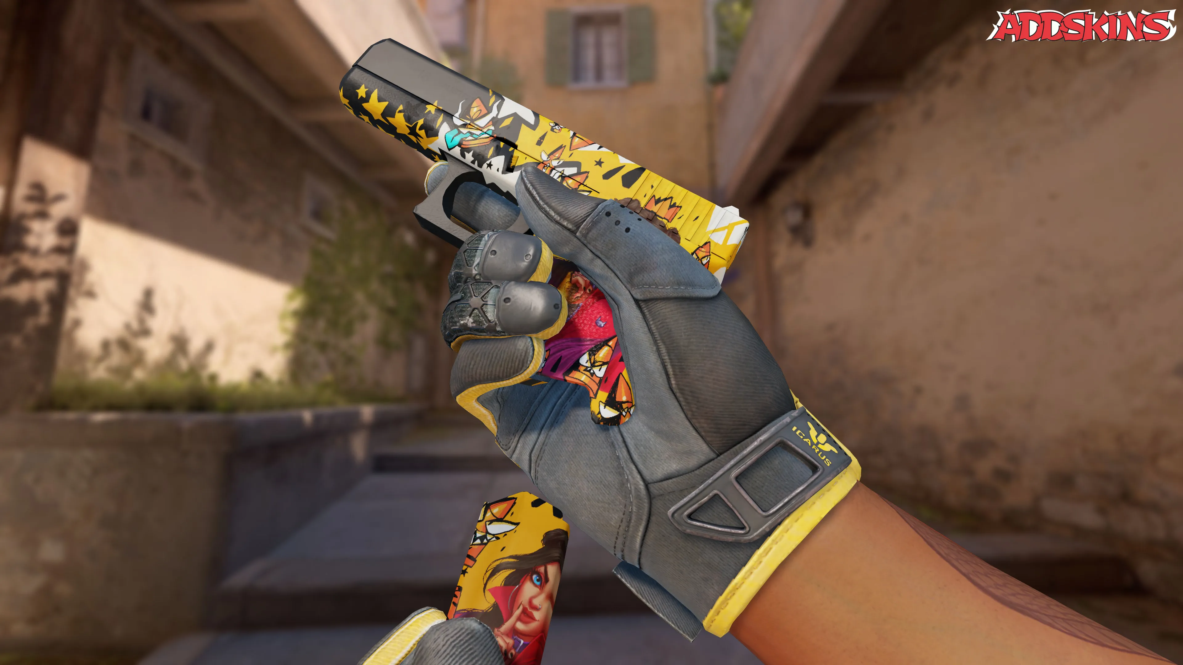 Этот Glock-18 имеет отделку Bullet Queen с яркой желтой краской, которая является главным привлекательным элементом данного стиля. Предлагаемая в широком спектре цветов отделка Bullet Queen позволяет создавать индивидуальные и яркие образы, независимо от используемого индекса узора.