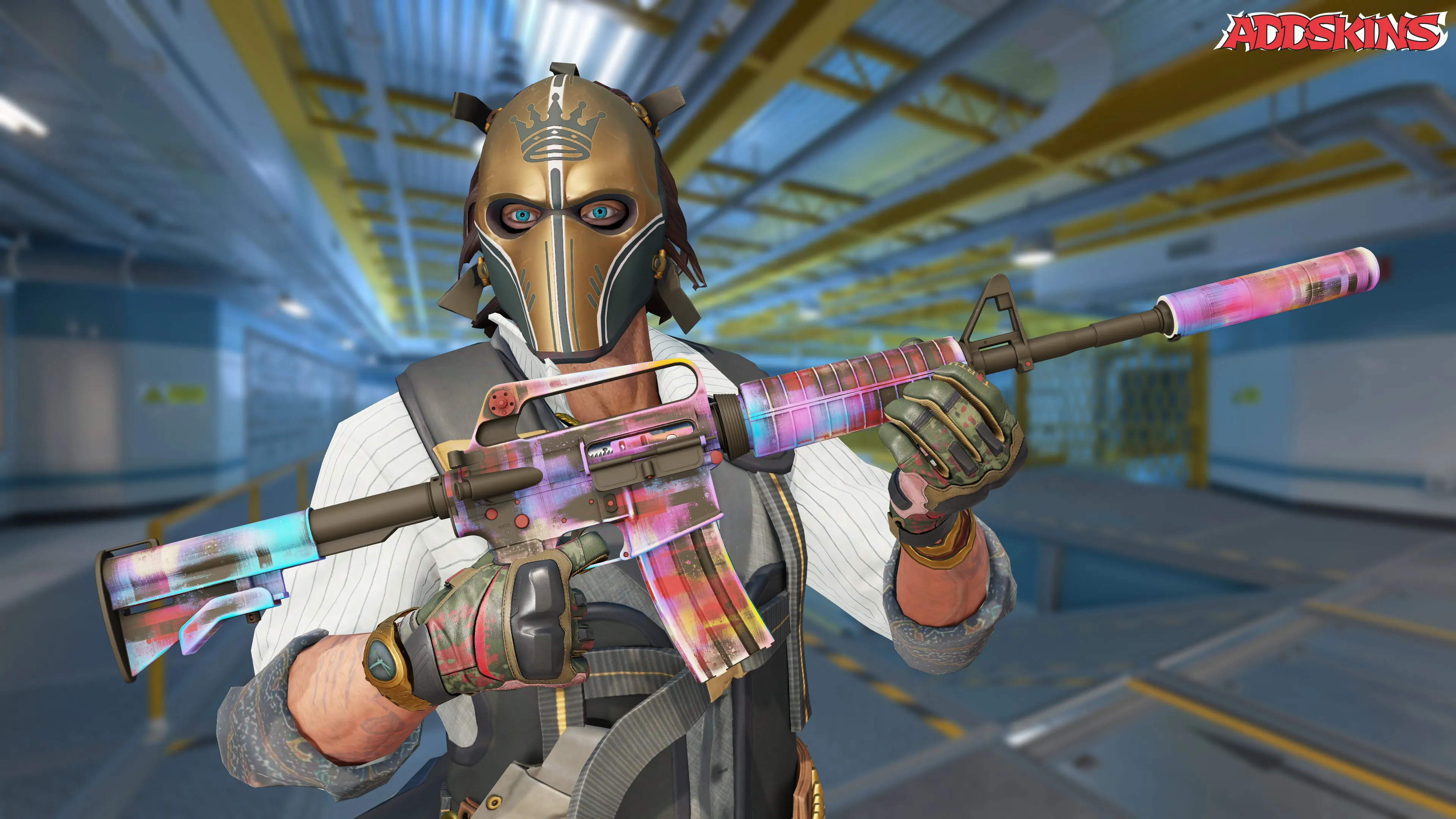 M4A1-S с глушителем имеет меньший размер магазина по сравнению с версией без глушителя, обеспечивая снижение отдачи и улучшенную точность. Уникальный скин Glitched Paint представляет собой яркий и абстрактный многоцветный узор, добавляя оружию неповторимый визуальный стиль.