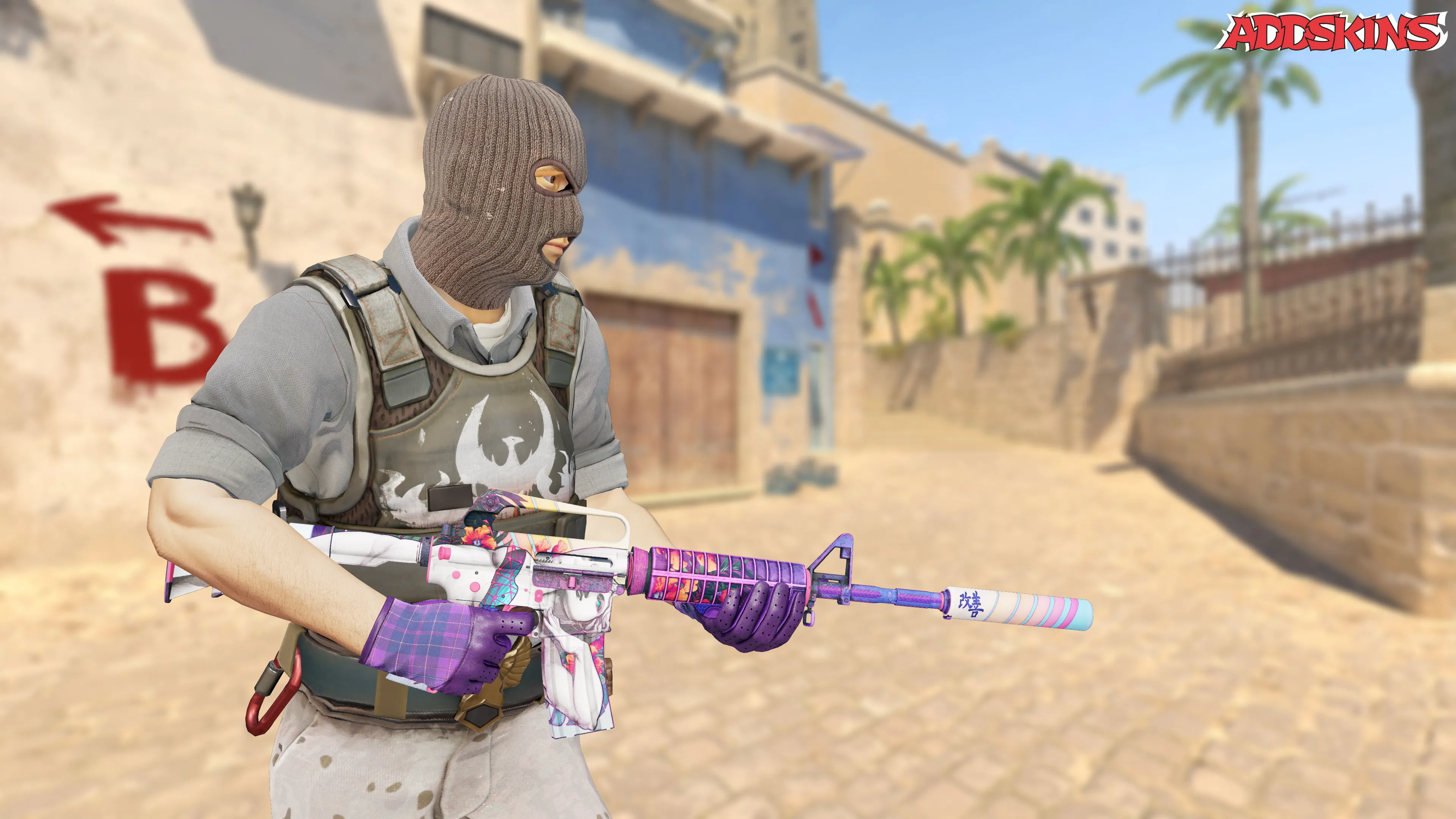 Скин M4A1-S | Vaporwave представляет собой кастомную окраску с ярким визуальным оформлением в стиле Vaporwave, позволяющую осуществить разнообразную и красочную настройку. Цветовая гамма фиолетового и розового придает оружию уникальный и привлекательный внешний вид, не подверженный влиянию индексов узоров.