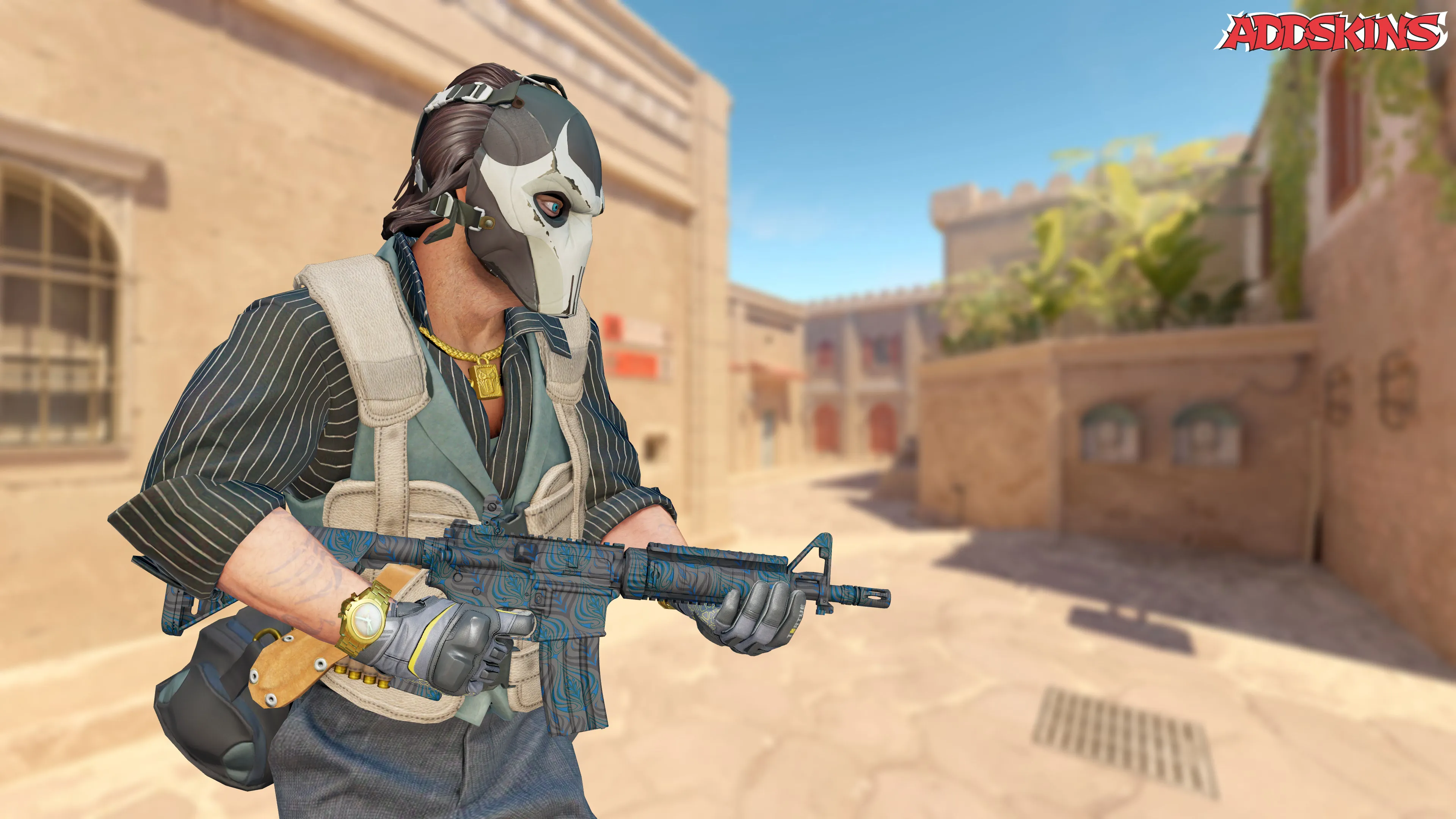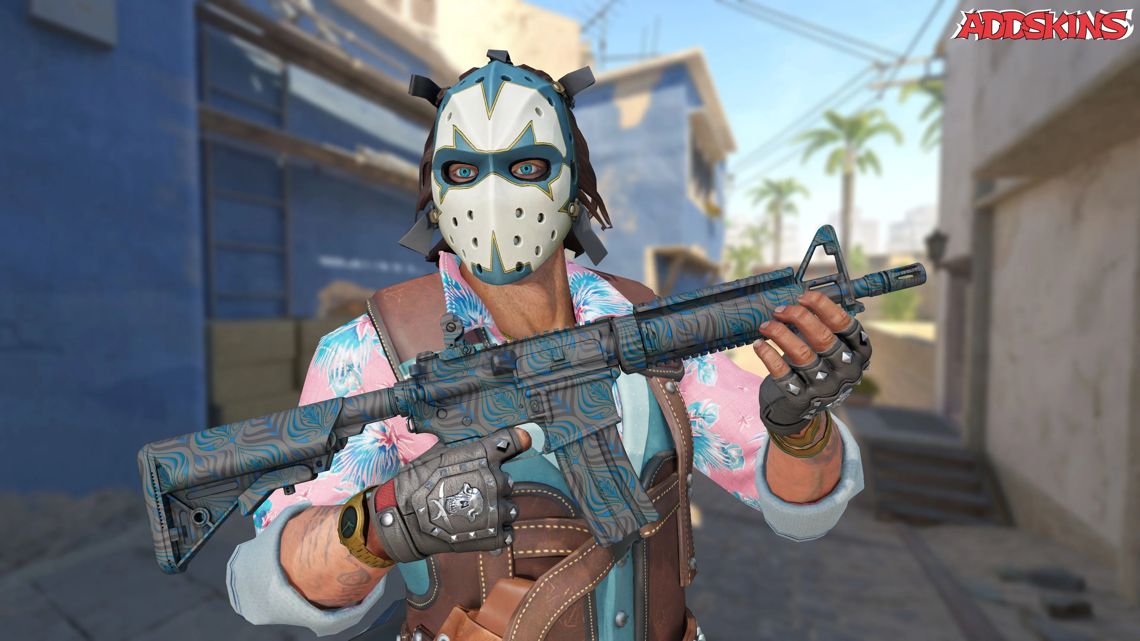 M4A4 | Dark Blossom - это усовершенствованная штурмовая винтовка, предпочитаемая контр-террористами за свою высокую точность, хотя у нее немного меньше урона, чем у AK-47. Элегантный дизайн с общим рисунком изображения голубой розовой почки, нарисованной спреем - жесткое напоминание о том, что красота часто скрывает опасность.