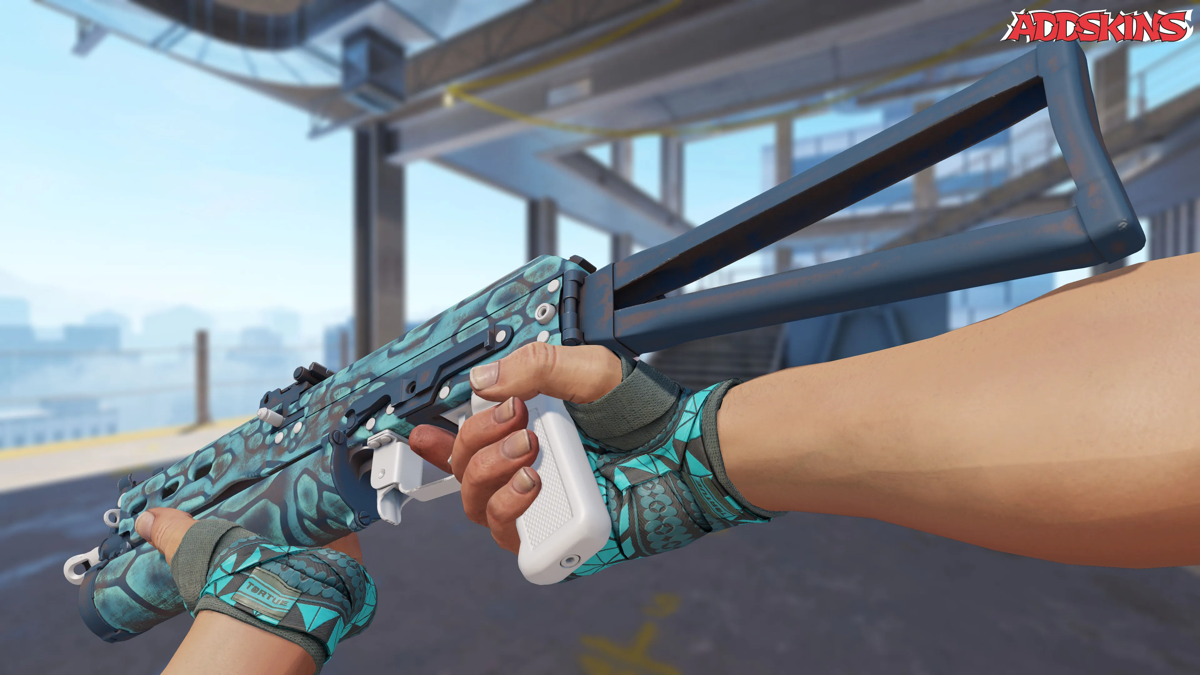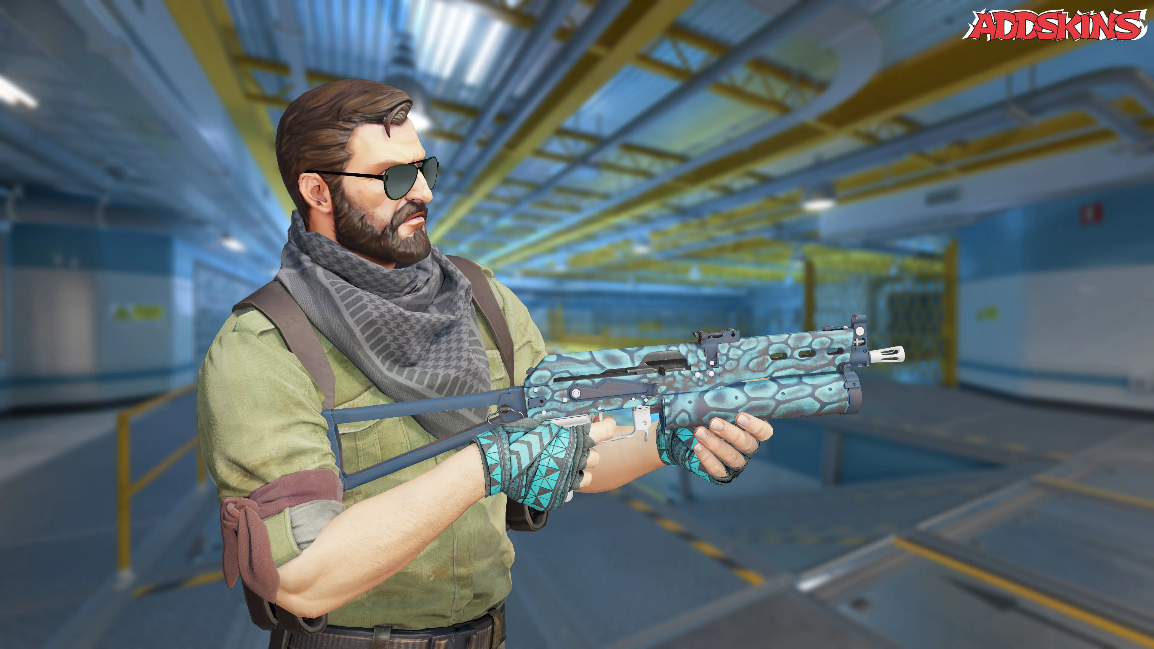 Скин PP-Bizon | Cold Cell имеет стиль "Spray-Paint" с характерным финишем Cold Cell. Оружие украшено несколькими слоями краски, нанесенными с использованием шаблонов, что придает ему основной цвет циан и индекс узора, влияющий на его общий вид.