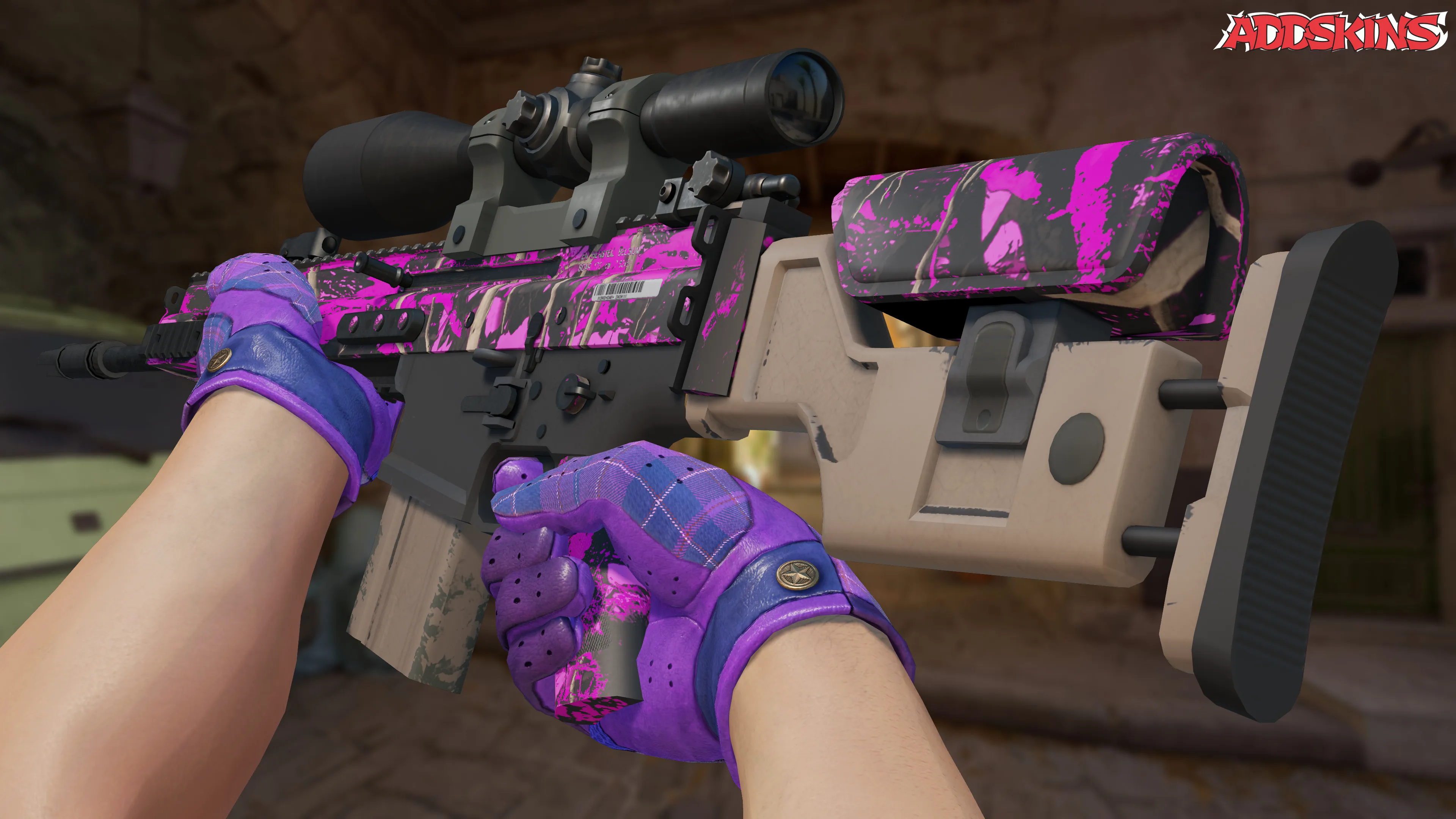 SCAR-20 | Splash Jam (Factory New) имеет стиль финиша в гидрографическом стиле, где детали оружия осторожно погружаются в плавающую пленку в водном резервуаре. Результатом стал яркий фиолетово-розовый цветовой рисунок. Индекс узора финиша добавляет уникальность и изменчивость в общем внешнем виде скина.