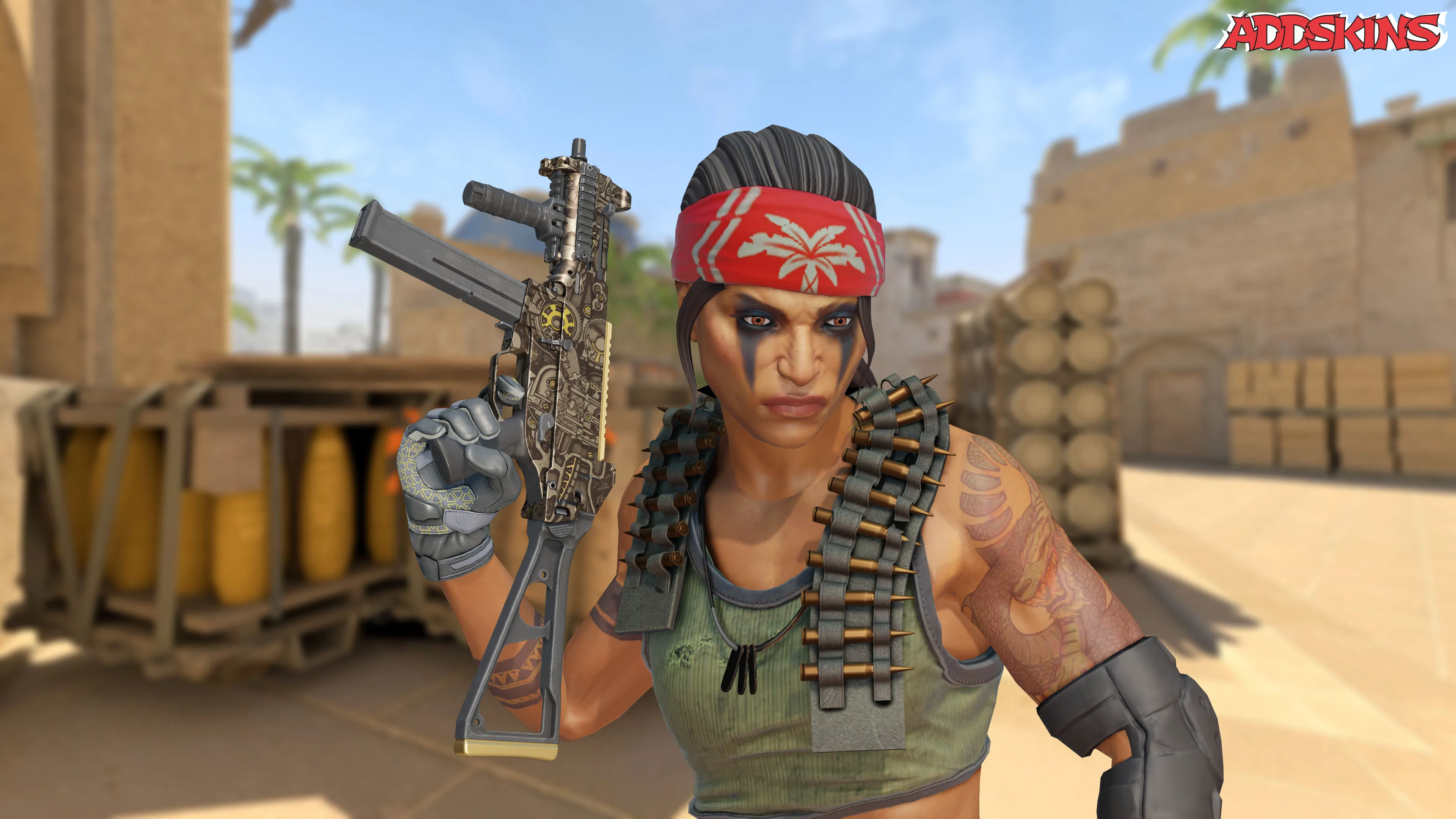 UMP-45 часто недооценивается, но находит себе хорошего спутника в ближнем бою, единственным недостатком является небольшая вместимость магазина. Обмотанный боевыми следами внешний вид демонстрирует анодированный узор, напоминающий изношенные детали двигателя, добавляя крутой шарм функциональности.