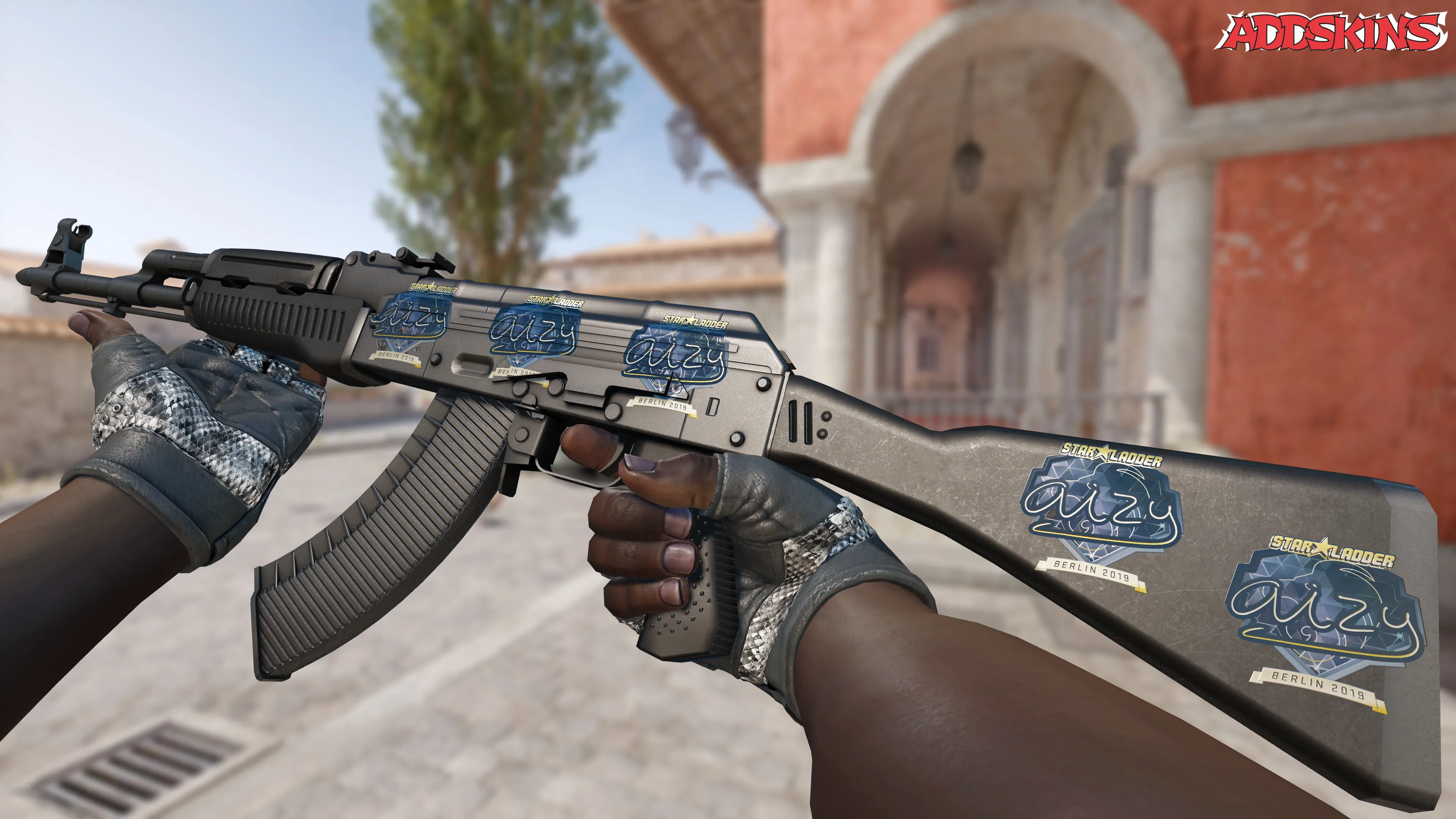 Этот скин с золотым оттенком и изображением игрока aizy на фоне Берлина 2019 года придает оружию роскошный и стильный вид, подчеркивая индивидуальность владельца. Он отличается высоким качеством деталей и яркими цветами, что делает его желанным для коллекционеров и ценителей красивых скинов.