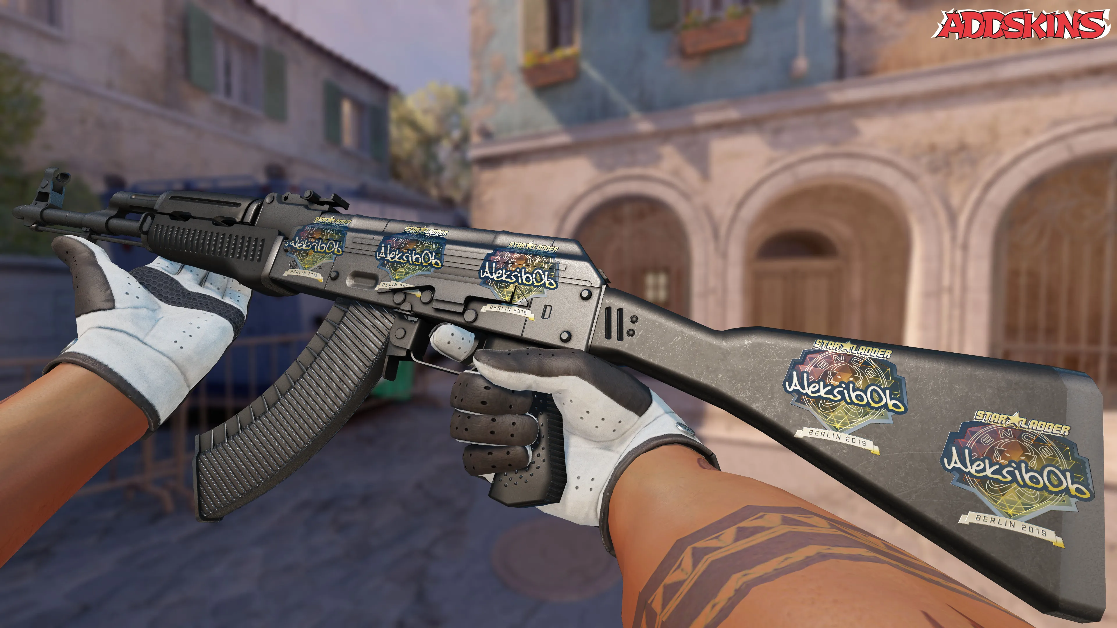 Скин с золотым изображением Aleksib на фоне Берлинского фонового рисунка - это коллекционный предмет, который подчеркивает стиль и профессионализм игрока. Его яркий дизайн и редкость делают его желанным объектом для коллекционеров и ценителей красивых вещей в CS2.