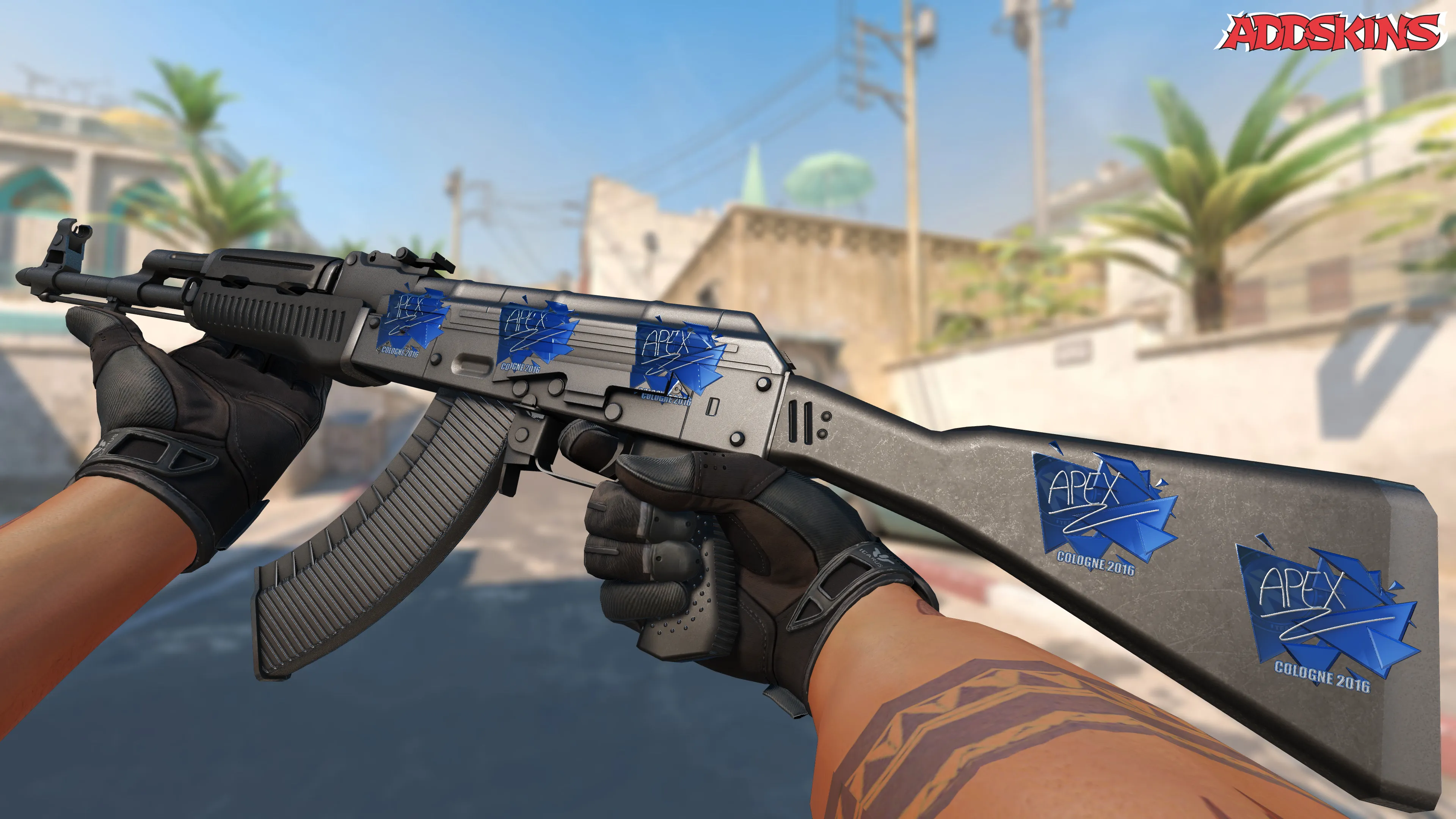 Скин с автографом от apEX был выпущен в рамках обновления от 24 июня 2016 года как часть капсулы с автографами от участников турнира в Кёльне 2016 года. Этот скин стал доступен в игре благодаря обновлению "Cologne 2016 – Tournament Stickers".