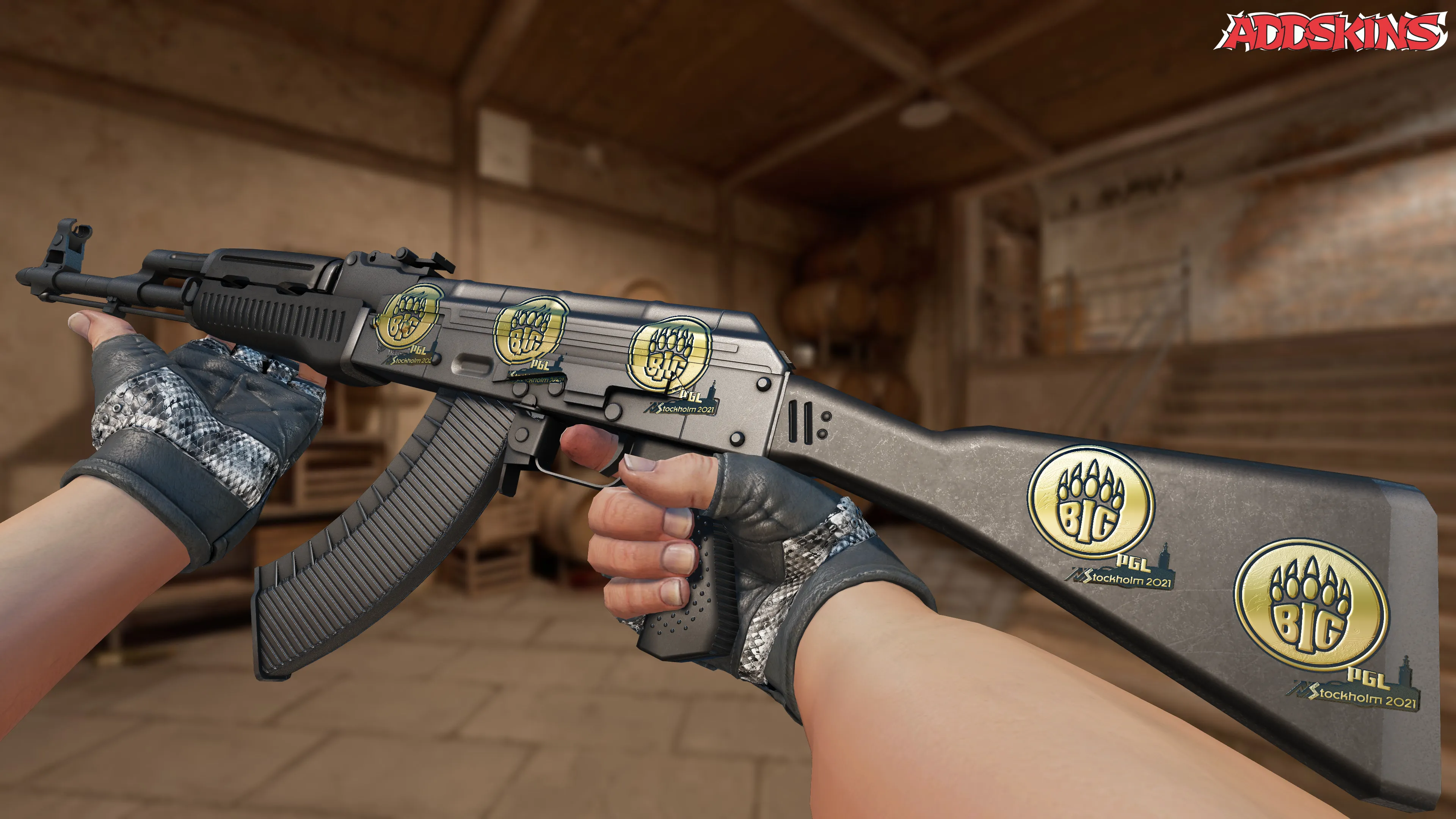 Стикер | BIG (Gold) | Stockholm 2021 - это редкий стикер, отмечающий выступление немецкой команды BIG на мейджоре Stockholm 2021. Получить его можно только открыв Stockholm 2021 Challengers Sticker Capsule, в котором содержится разнообразие стикеров от участвующих команд.