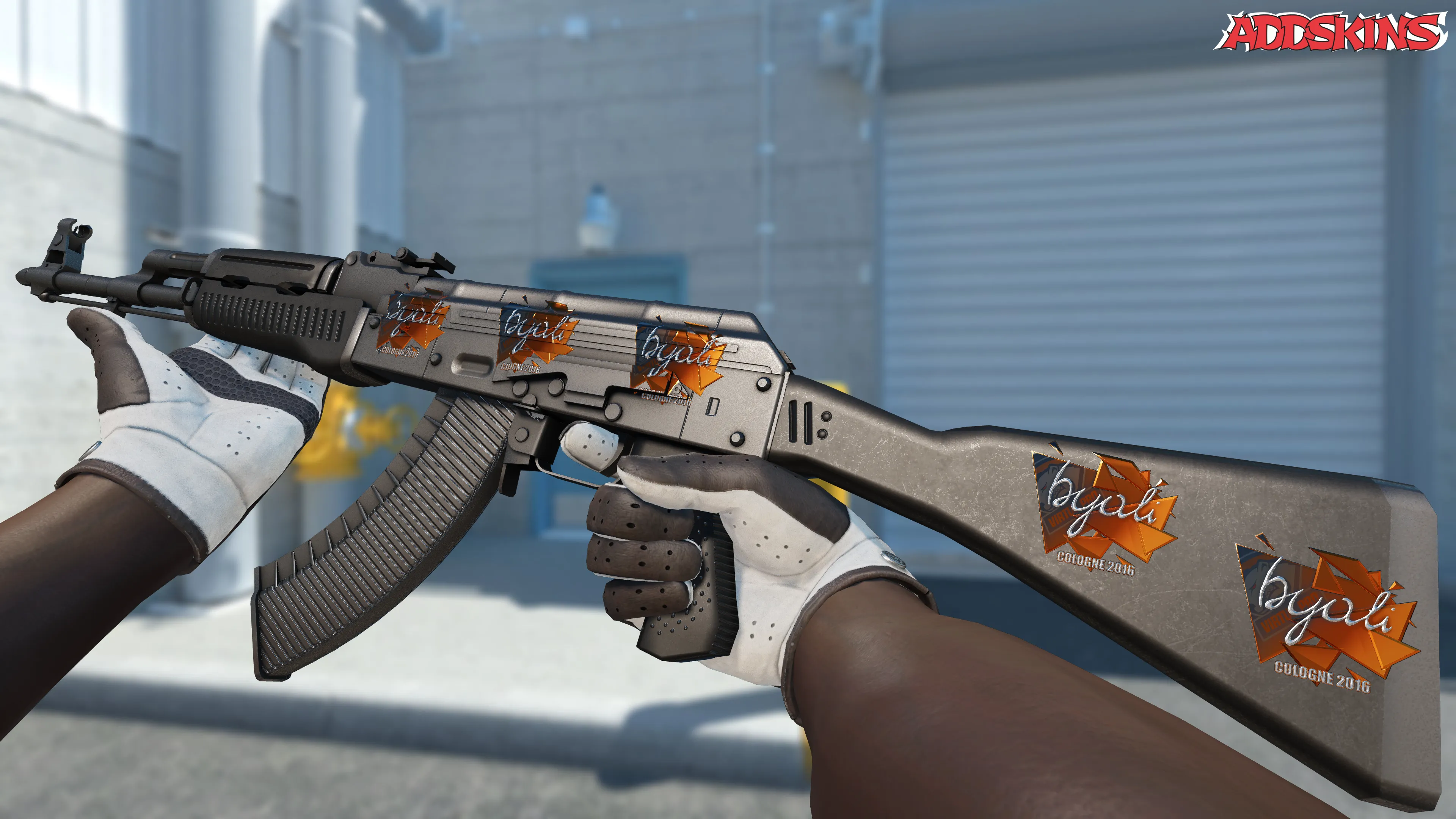 Скин с изображением игрока byali в фольгированном стиле, выпущенный на турнире в Кёльне 2016 года, выглядит стильно и привлекает внимание благодаря ярким цветам и деталям. Этот скин является популярным среди коллекционеров и ценителей качественных предметов в CS2.