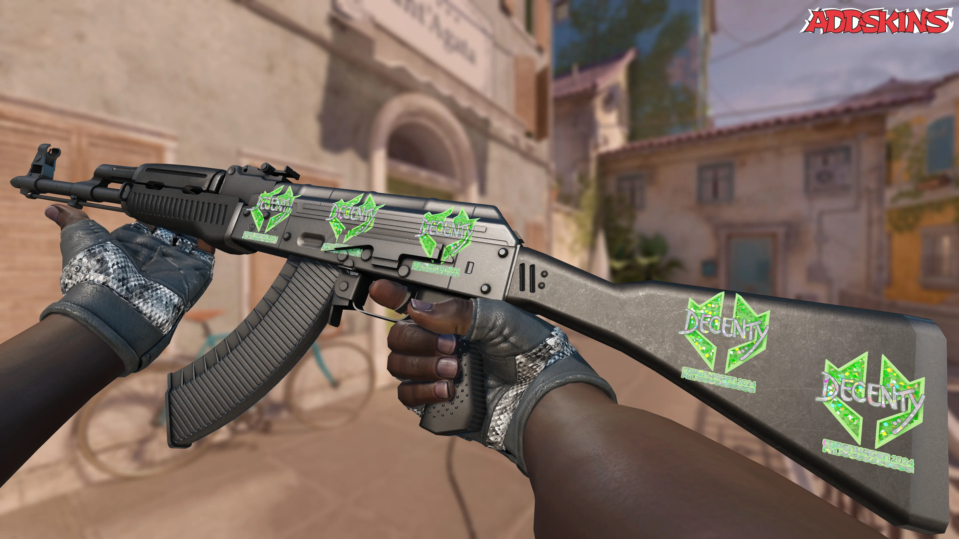 Скин с эффектом "decenty (Glitter)" был представлен в CS2 год назад, 7 января 2024 года. Он был включен в капсулу автографов "Легенды Копенгагена 2024", совпадая с выпуском дополнения "Стикеры Копенгагена 2024".