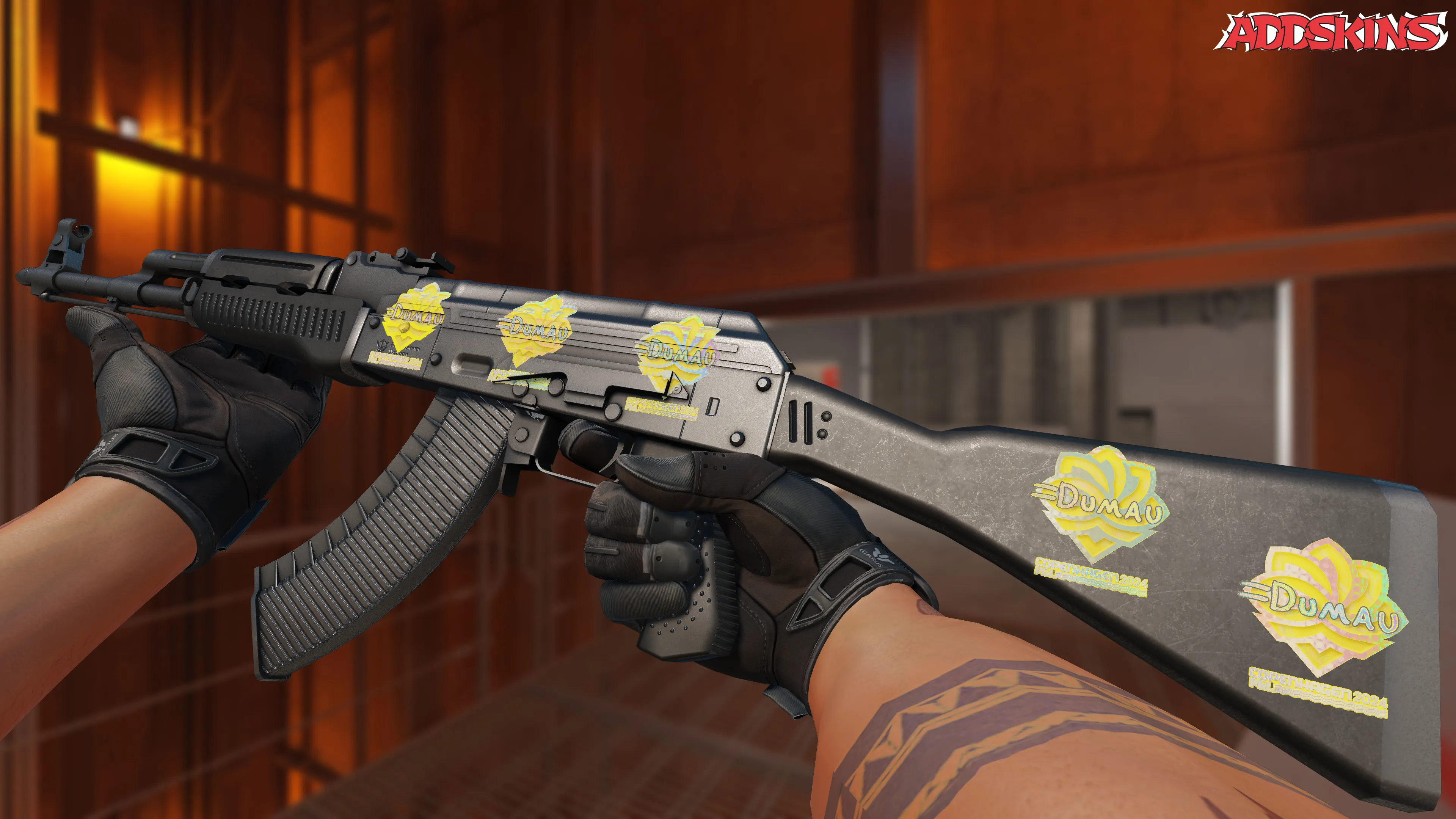 Скин с эффектом Holo и с подписью "dumau" на фоне символов Копенгагена 2024 представляет собой стильный и уникальный элемент для вашего инвентаря в CS2. Благодаря ярким цветам и динамичному дизайну, этот скин привлечет внимание и подчеркнет ваш профессионализм в игре.