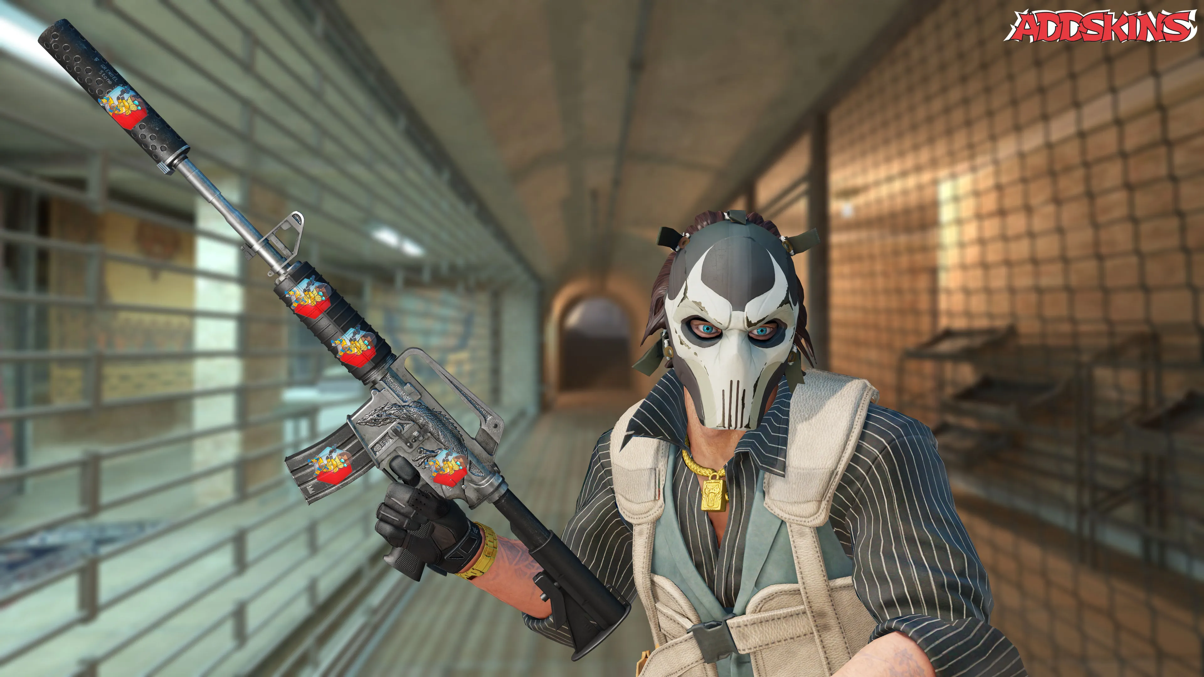 Скин с изображением прыгающего космического экзоскелета был впервые представлен в CS2 почти год назад, 16 августа 2022 года, в рамках долгожданной коллекции наклеек к 10-летию игры. Уникальный дизайн был разработан талантливым художником из сообщества, известным под ником "oKeyush".