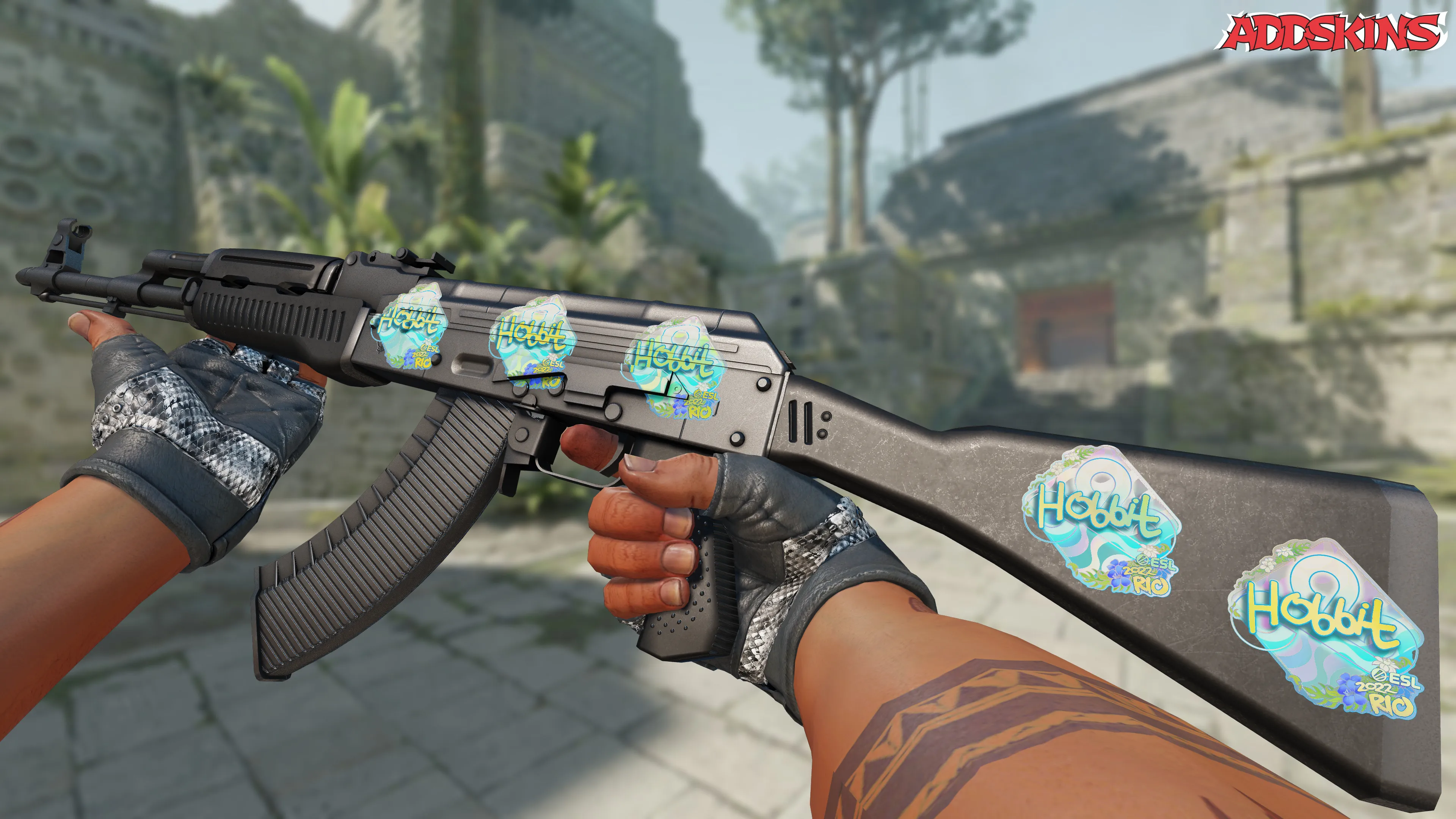 Скин с изображением Hobbit в голографическом стиле на фоне Rio 2022 - один из самых редких предметов из 6 710 уникальных стикеров в CS2. Его экзотичность заключается в том, что это самый редкий дроп, и шанс его выпадения в реальном времени составляет около 3,2%.
