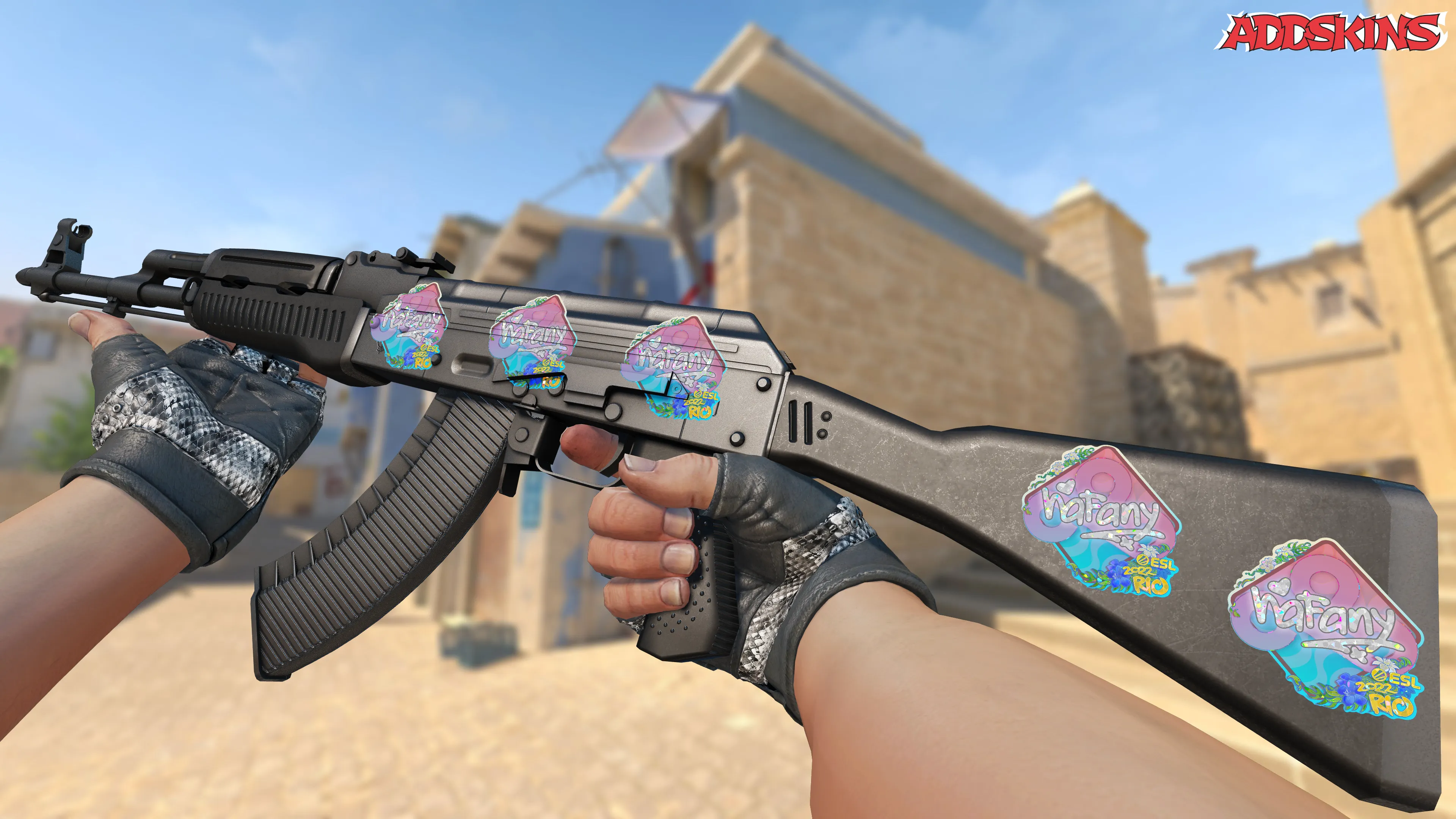 Скин с изображением nafany в стиле Glitter для турнира Rio 2022 в CS2 выделяется яркими мерцающими деталями, придающими ему эффектный и запоминающийся вид. Дизайн скина отличается высоким качеством проработки и детализацией, что делает его популярным среди игроков и ценителей креативных решений в игровой индустрии.