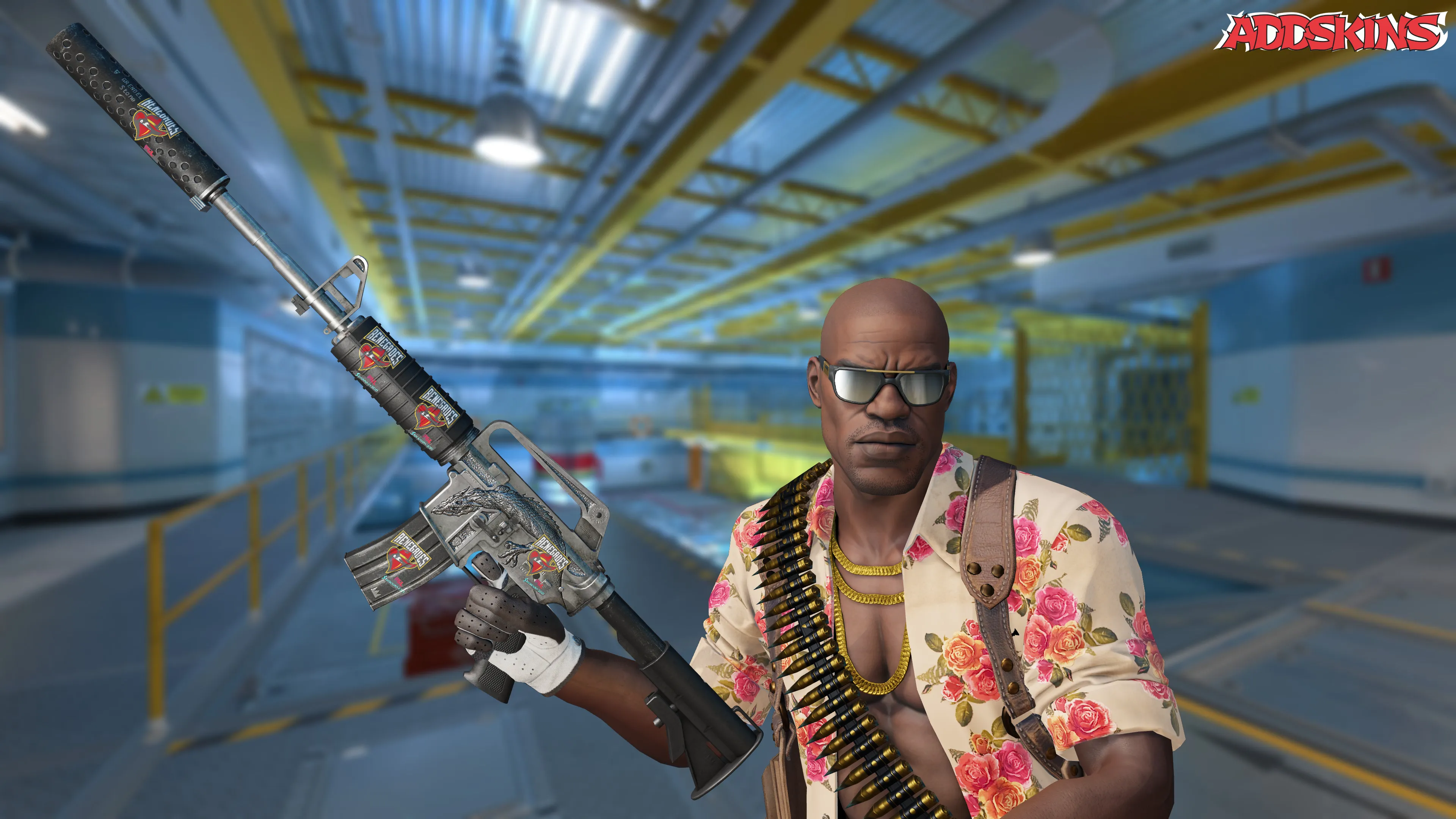 Этот скин отличается стильным дизайном с яркими цветами, что делает его привлекательным для молодых игроков, стремящихся выделиться на фоне других. Также на нем присутствуют символы и логотипы, напоминающие об участии команды Renegades в турнире в Стокгольме, что делает его популярным среди фанатов этой организации.