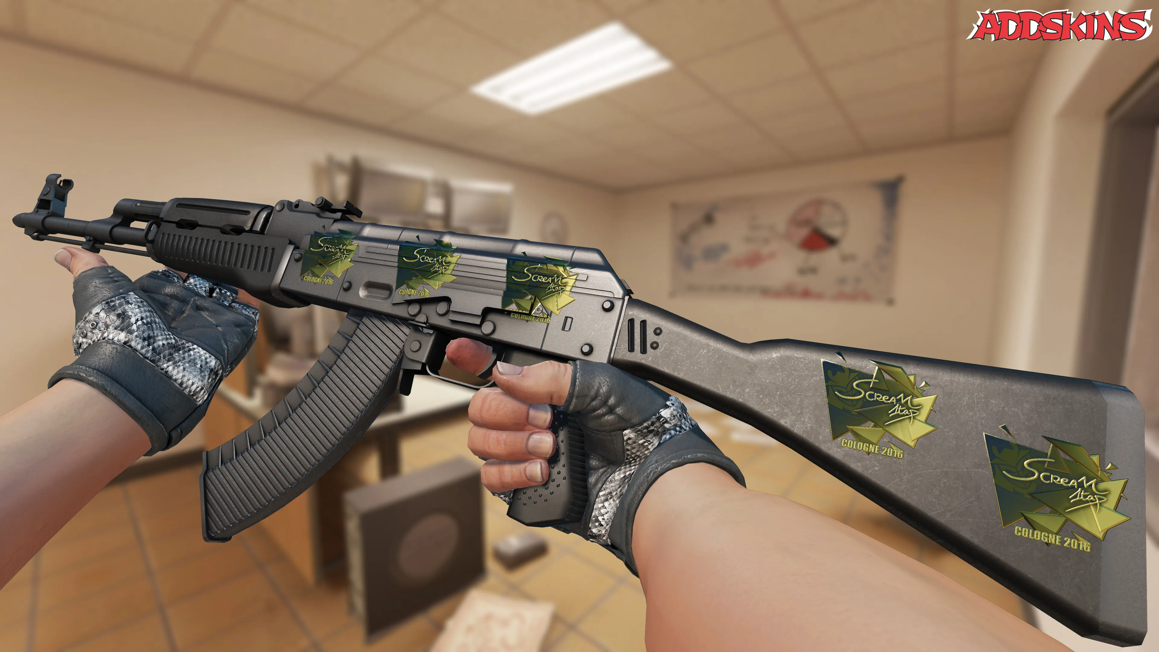 Этот скин представляет собой золотой стикер с изображением ScreaM, который был выпущен специально для турнира в Кёльне 2016 года. Он является одним из самых редких и дорогих скинов в игре, привлекая внимание коллекционеров и ценителей CS2.