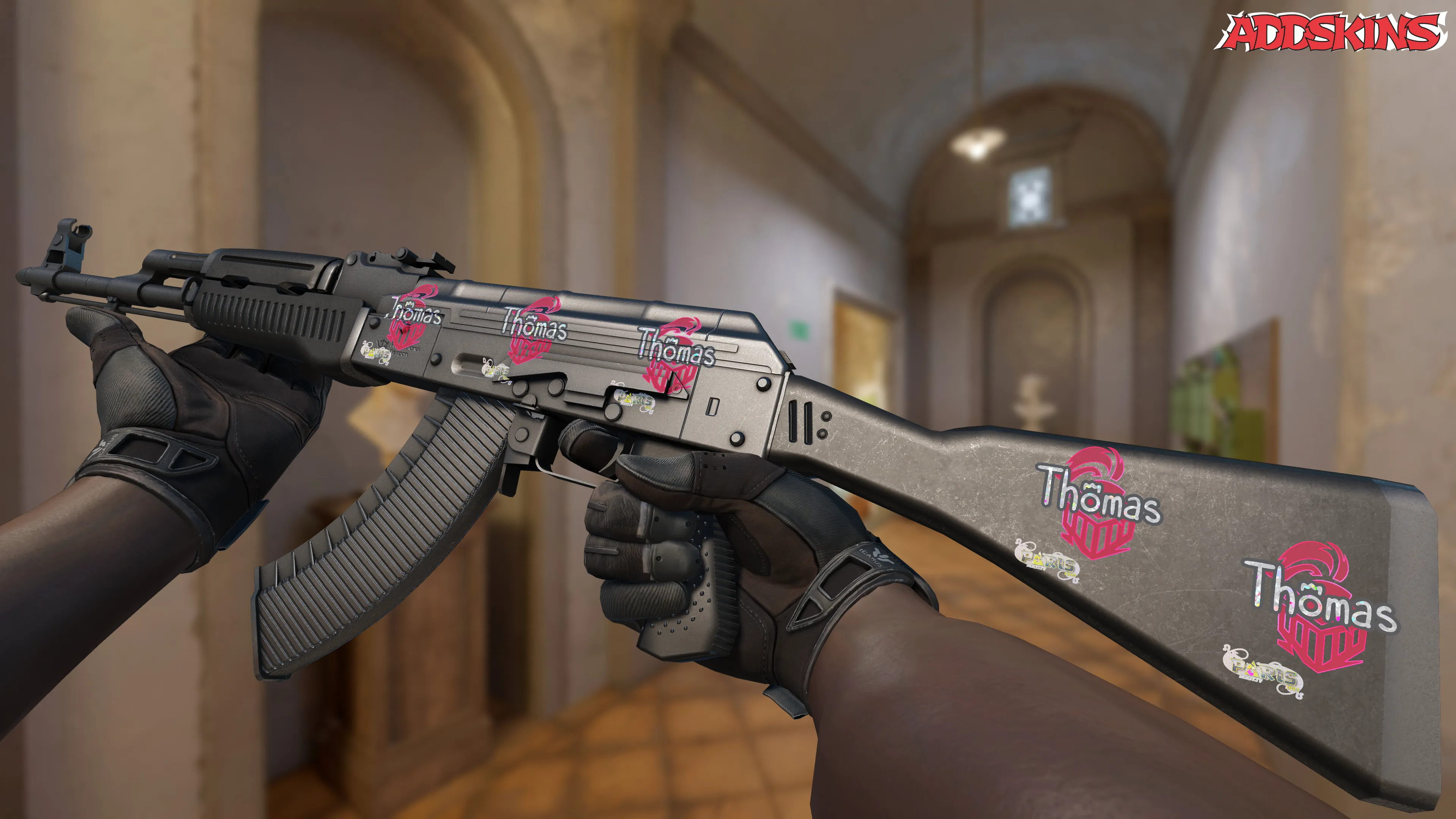 Этот скин имеет стильный дизайн с изображением Томаса, который блестит и привлекает внимание. Он идеально вписывается в тематику Парижа 2023 года, создавая атмосферу уникальности и роскоши.
