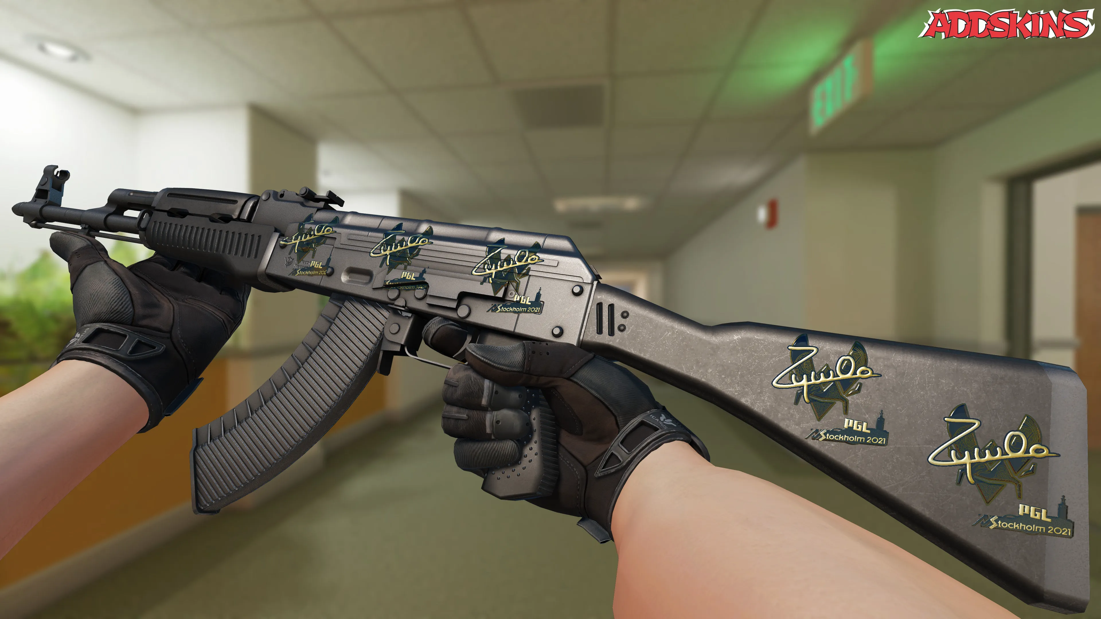 Скин с изображением ZywOo в золотой расцветке, выполненный специально для турнира в Стокгольме 2021 года, отличается высоким качеством деталей и ярким дизайном, что делает его привлекательным для коллекционеров и поклонников игрока. Уникальная комбинация золотого цвета и стилизованного портрета ZywOo придает скину эксклюзивность и шик, подчеркивая его значимость в мире CS2.