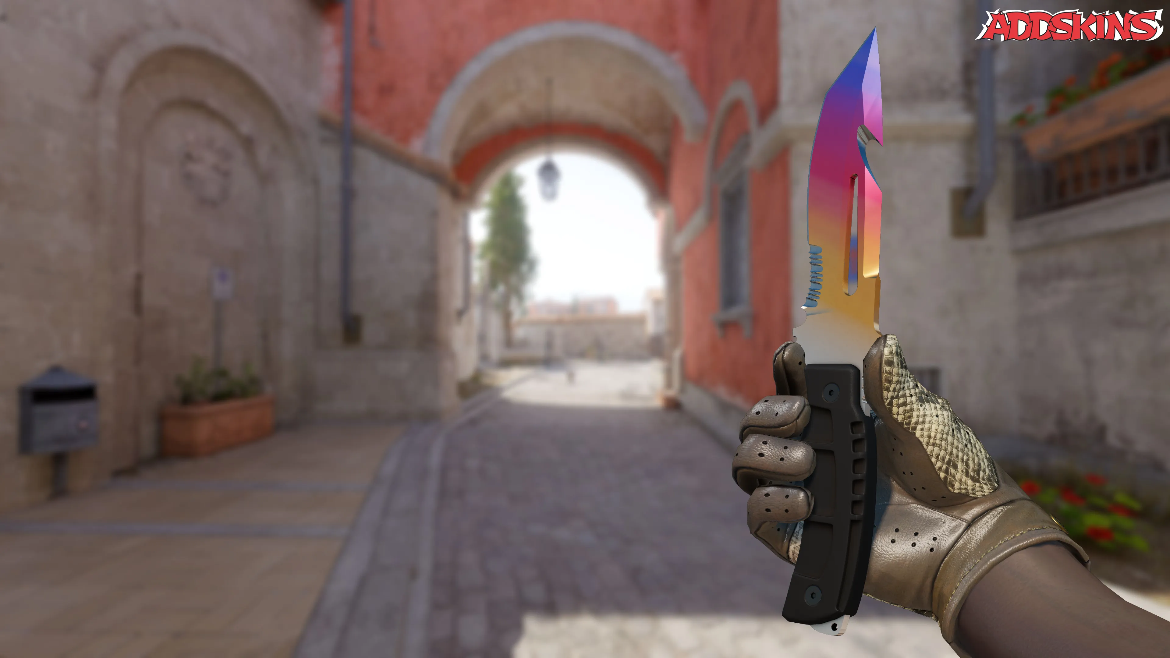 Этот нож выделяется стилем "Анодированный Аэрограф", тщательно нанесенным для имитации процесса ручной аэрографии на сладком покрытии. Он также дополнен отделкой "Фейд", добавляя индивидуальное прикосновение, так как его внешний вид зависит от индекса узора, создавая потрясающую смесь цветов, плавно переходящих по всему лезвию.